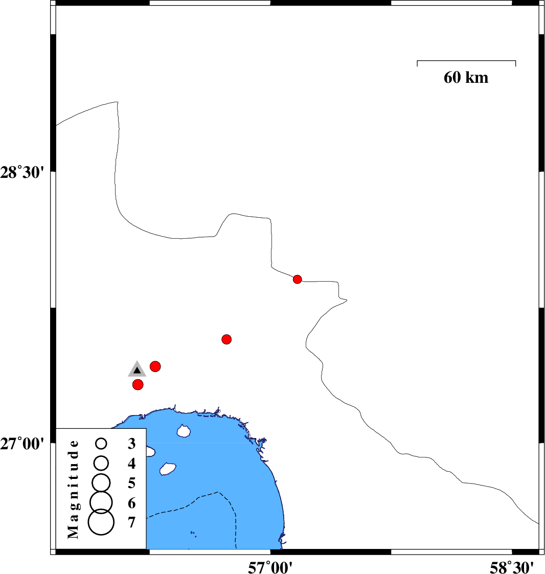 2017/11/09 11:37:16.8 15:07:16.8 27.57456.72814 ML2.7 Hormozgan Province, 53 km North-West of Dehbarez