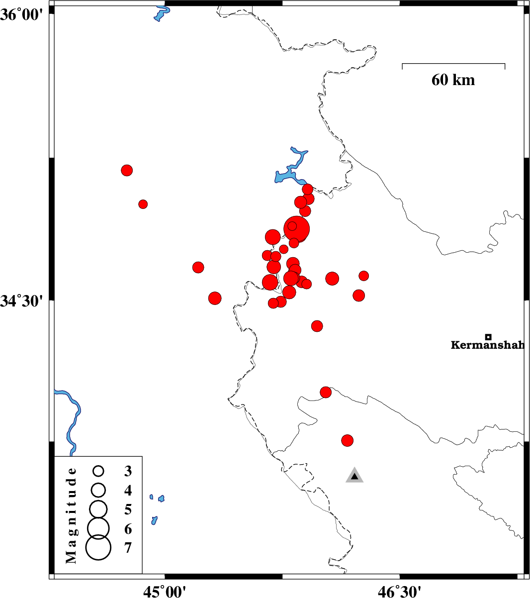 | 2017/11/12 | 22:38:36.3 | 02:08:36.3 | 34.485 | 45.691 | 14 | ML3 | Kermanshah Province, 10 km -East of Qasr-E-Shirin | ||