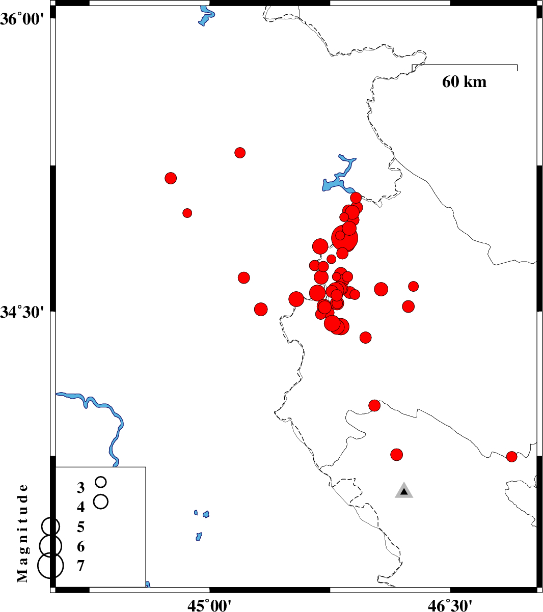2017/11/12 | 18:52:15.9 | 22:22:15.9 | 34.597 | 45.872 | 14 | ML:3.4 | Kermanshah Province, 15 km North of Sar-e pol-e zahab | ||