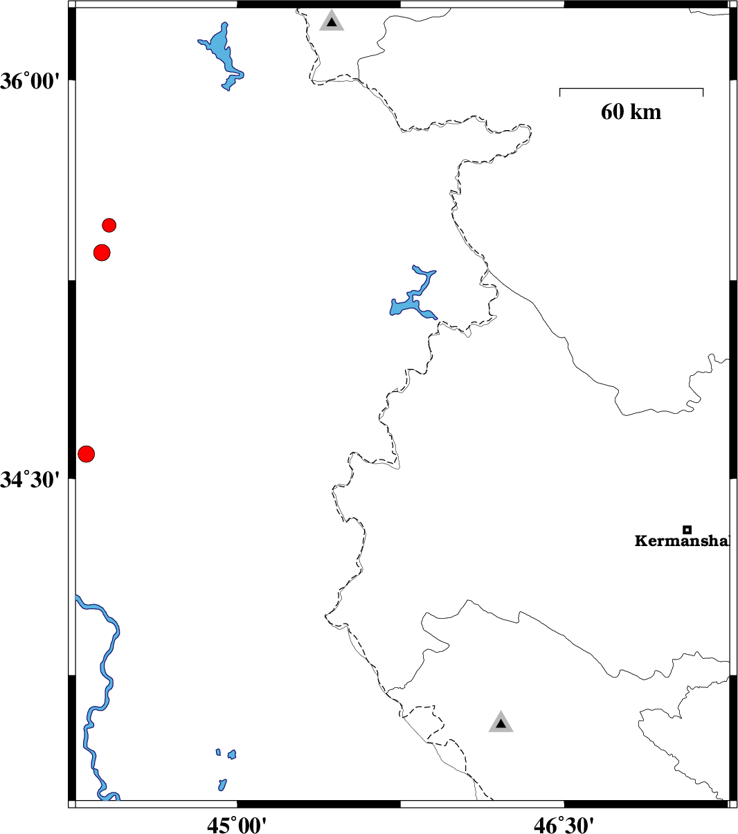| 2017/11/12 | 21:01:34.4 | 00:31:34.4 | 34.012 | 46.027 | 14 | ML3.2 | Kermanshah Province, 18 km South-East of Gilan-E-Gharb | ||