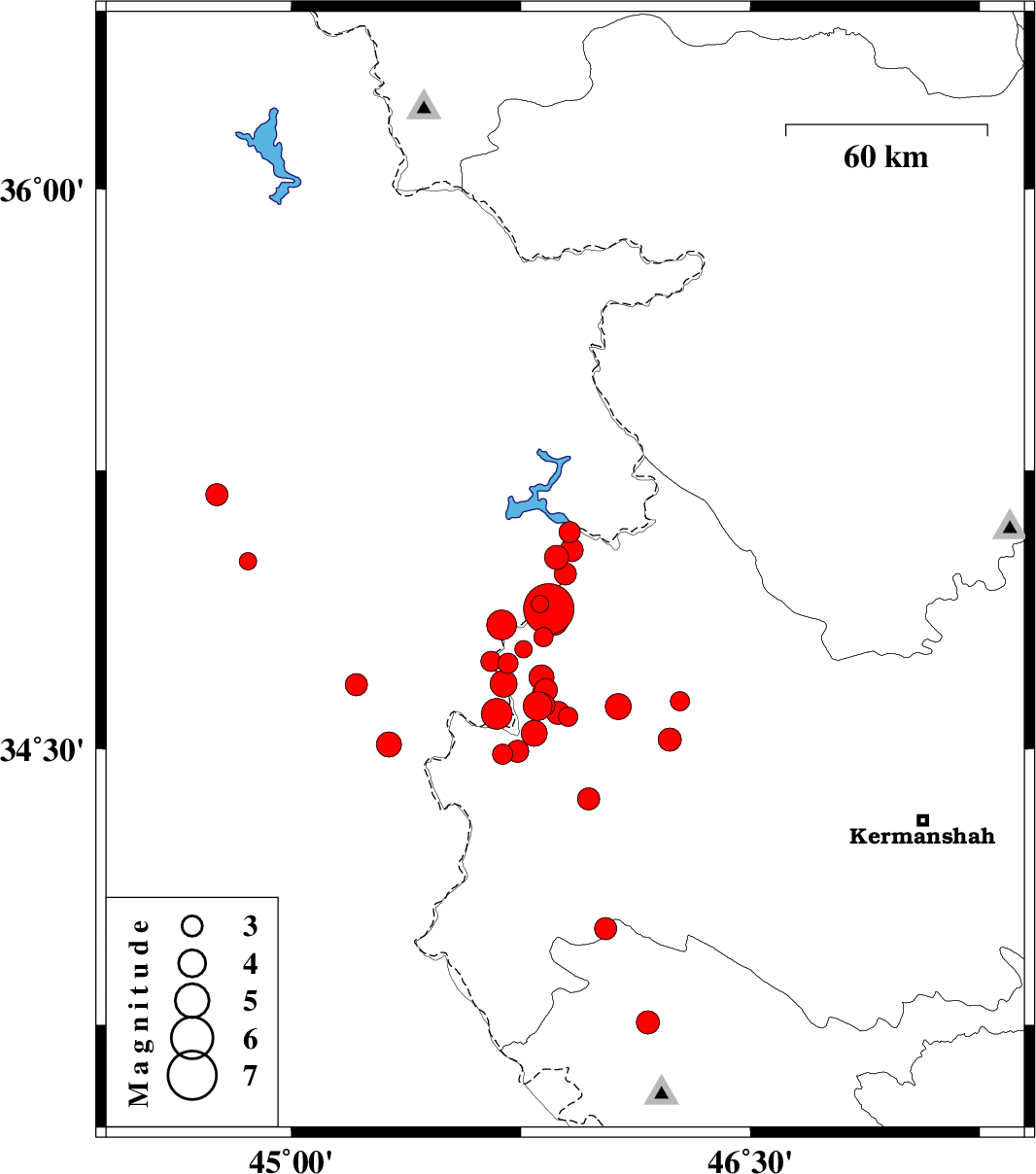 | 2017/11/12 | 18:18:17.8 | 21:48:17.8 | 34.877 | 45.841 | 18 | Mb7.3 | Kermanshah Province, 13 km North of Tazehabad | ||