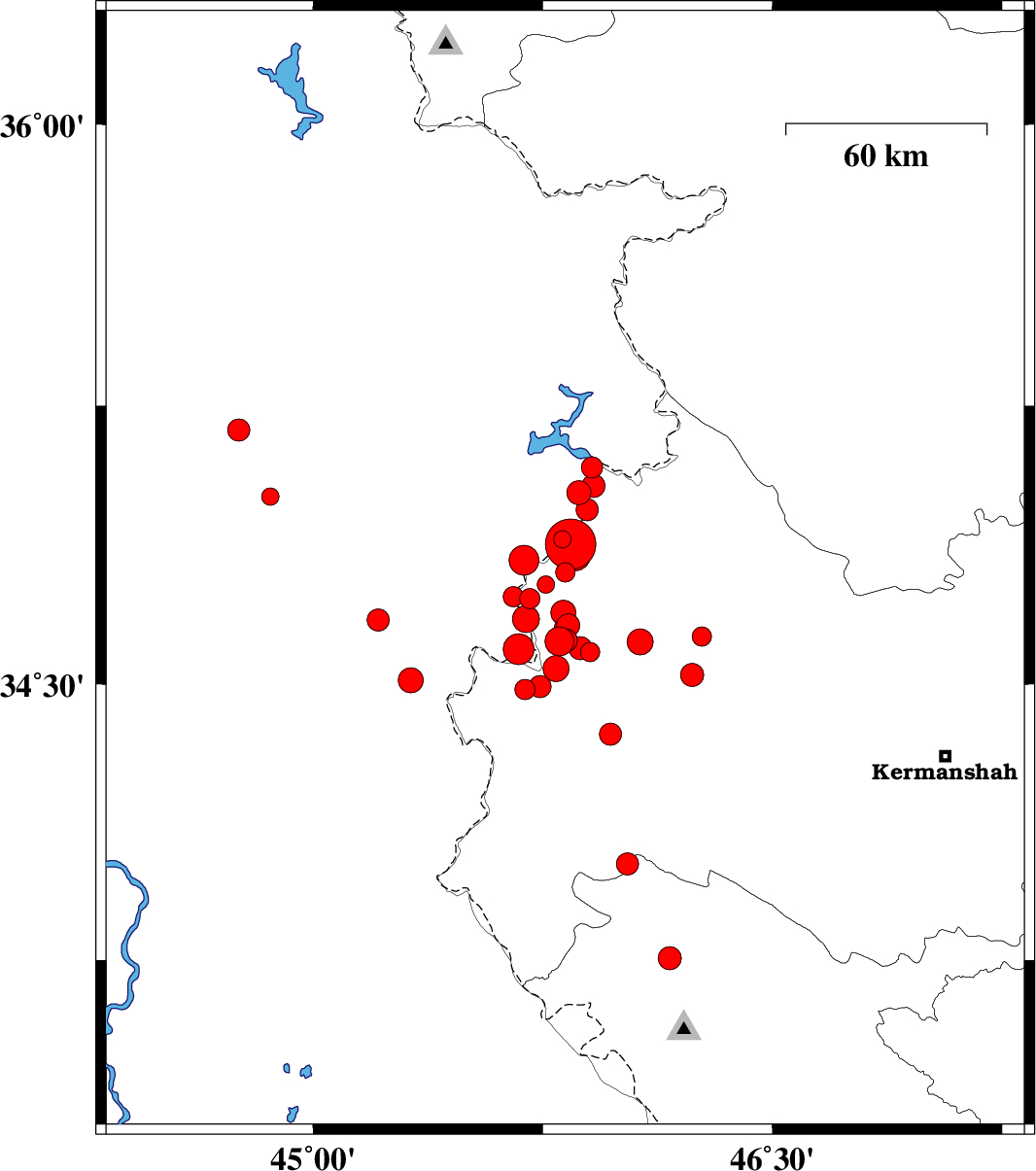 | 2017/11/12 | 22:38:36.3 | 02:08:36.3 | 34.485 | 45.691 | 14 | ML3 | Kermanshah Province, 10 km -East of Qasr-E-Shirin | ||