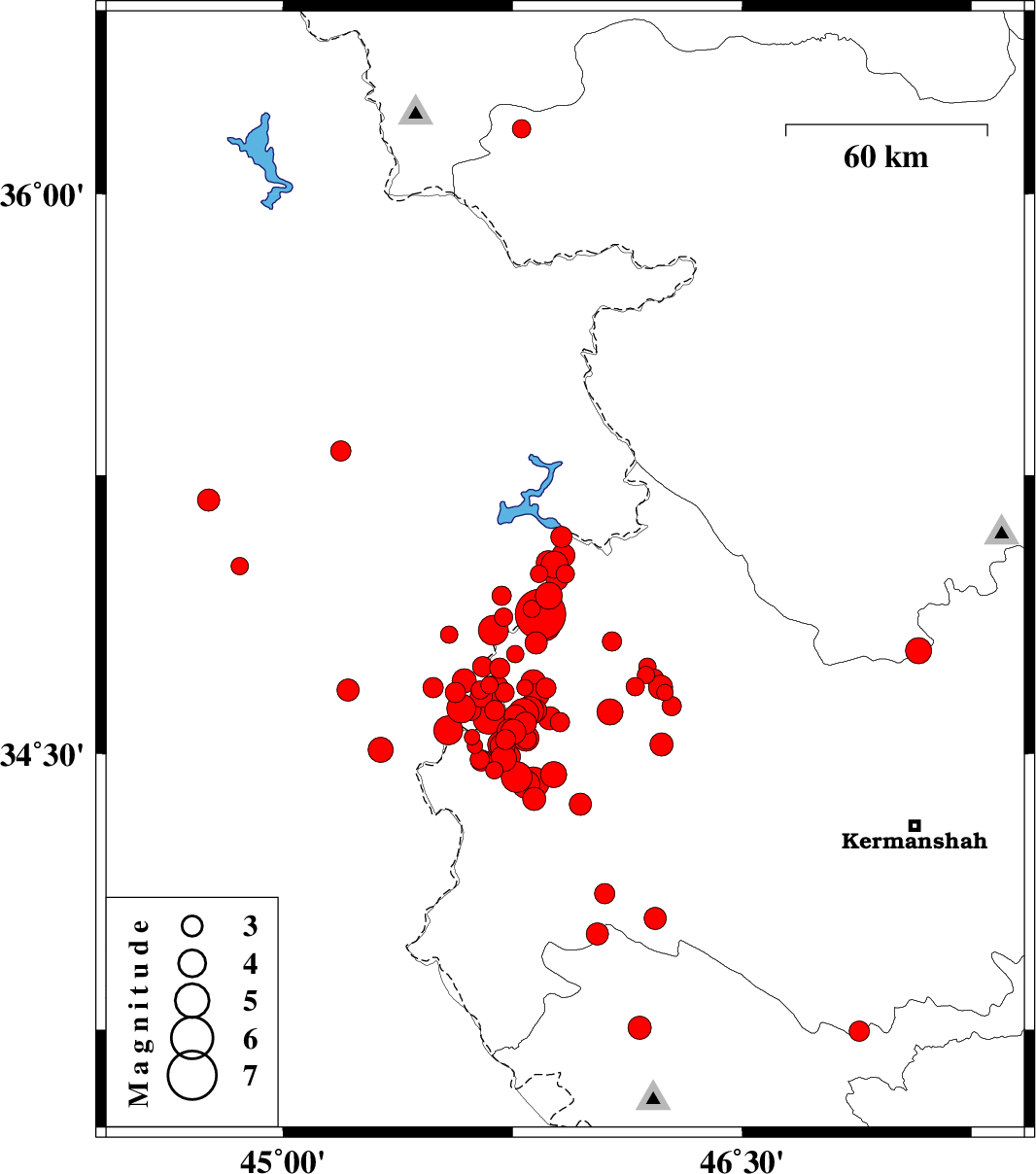 | 2017/11/14 | 10:11:15.1 | 13:41:15.1 | 34.68 | 46.233 | 7 | ML3.5 | Kermanshah Province, 26 km South-West of Javanrud | ||