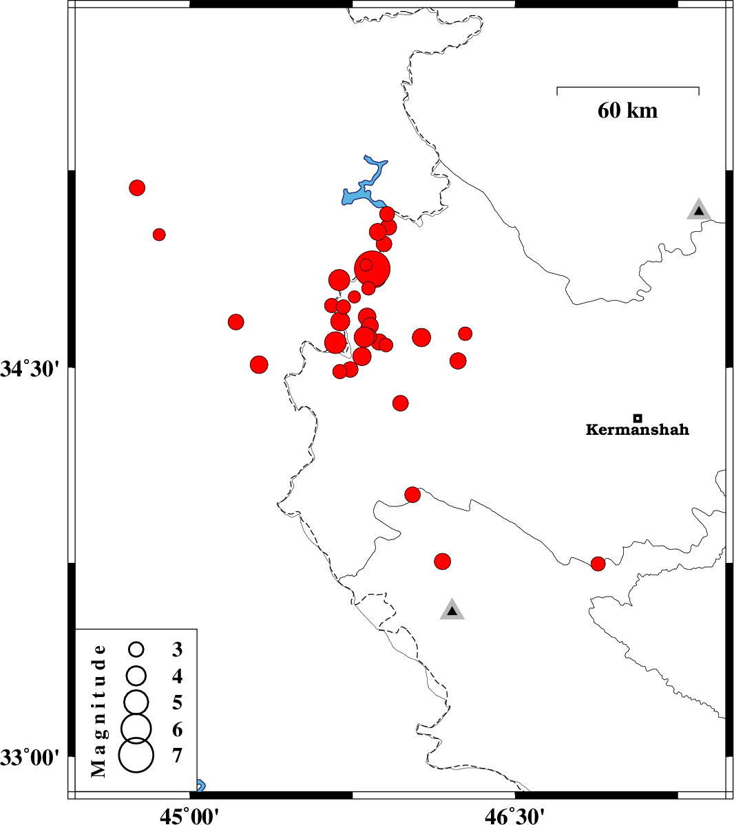| 2017/11/12 | 22:38:36.3 | 02:08:36.3 | 34.485 | 45.691 | 14 | ML3 | Kermanshah Province, 10 km -East of Qasr-E-Shirin | ||