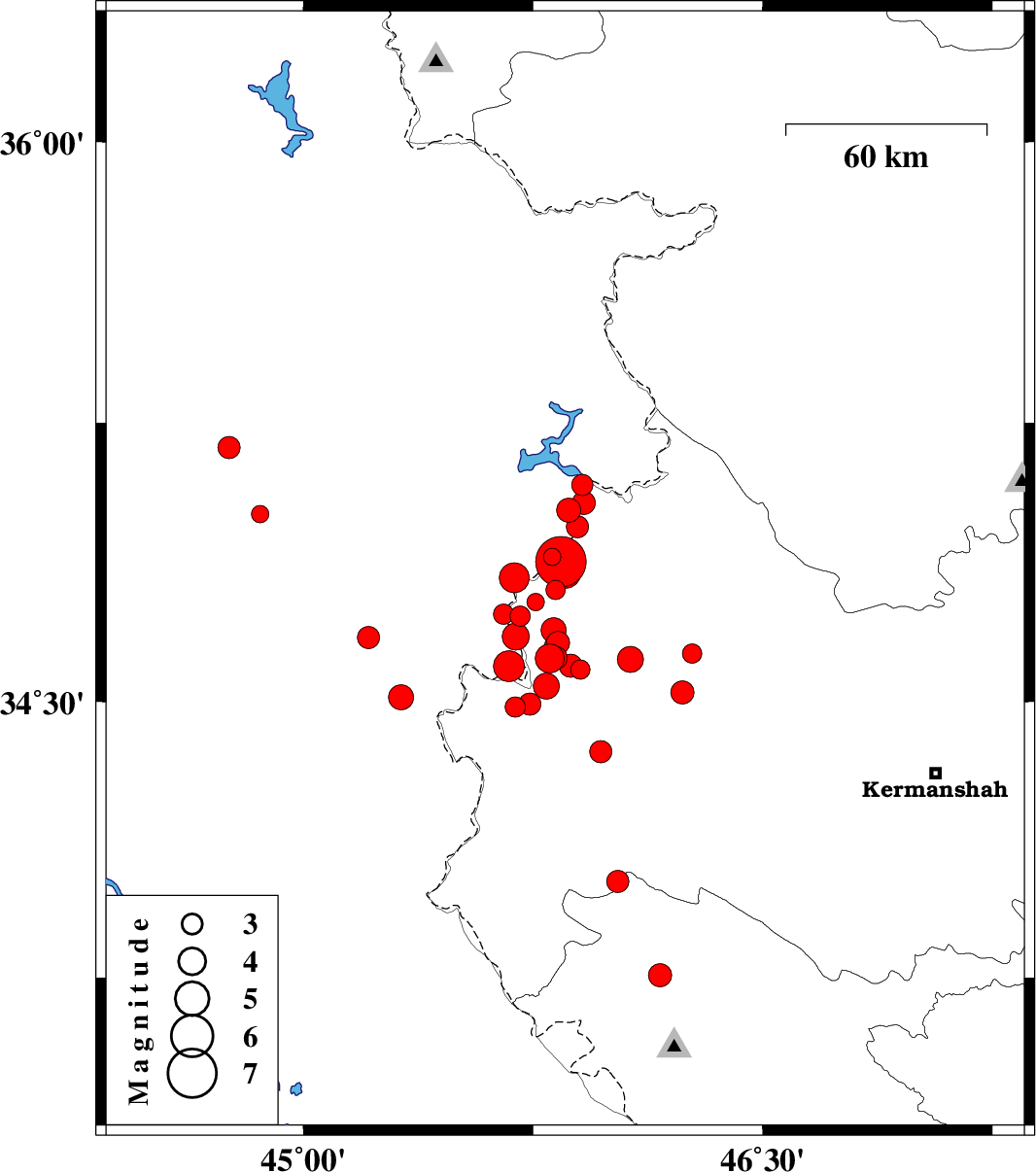 | 2017/11/12 | 18:18:17.8 | 21:48:17.8 | 34.877 | 45.841 | 18 | Mb7.3 | Kermanshah Province, 13 km North of Tazehabad | ||