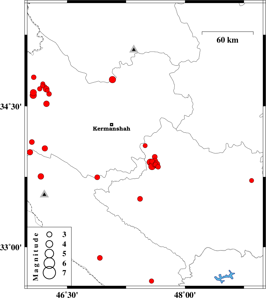 | 2017/10/24 | 02:14:33.1 | 05:44:33.1 | 33.746 | 46.882 | 14 | ML3 | Kermanshah Province, 32 km -East of Sar Ableh |
