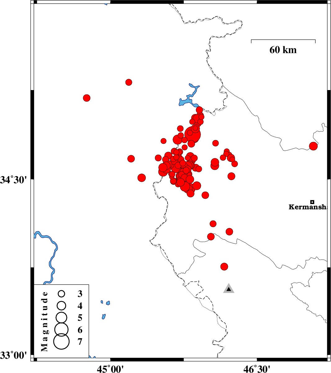 | 2017/11/12 | 22:38:36.3 | 02:08:36.3 | 34.485 | 45.691 | 14 | ML3 | Kermanshah Province, 10 km -East of Qasr-E-Shirin | ||