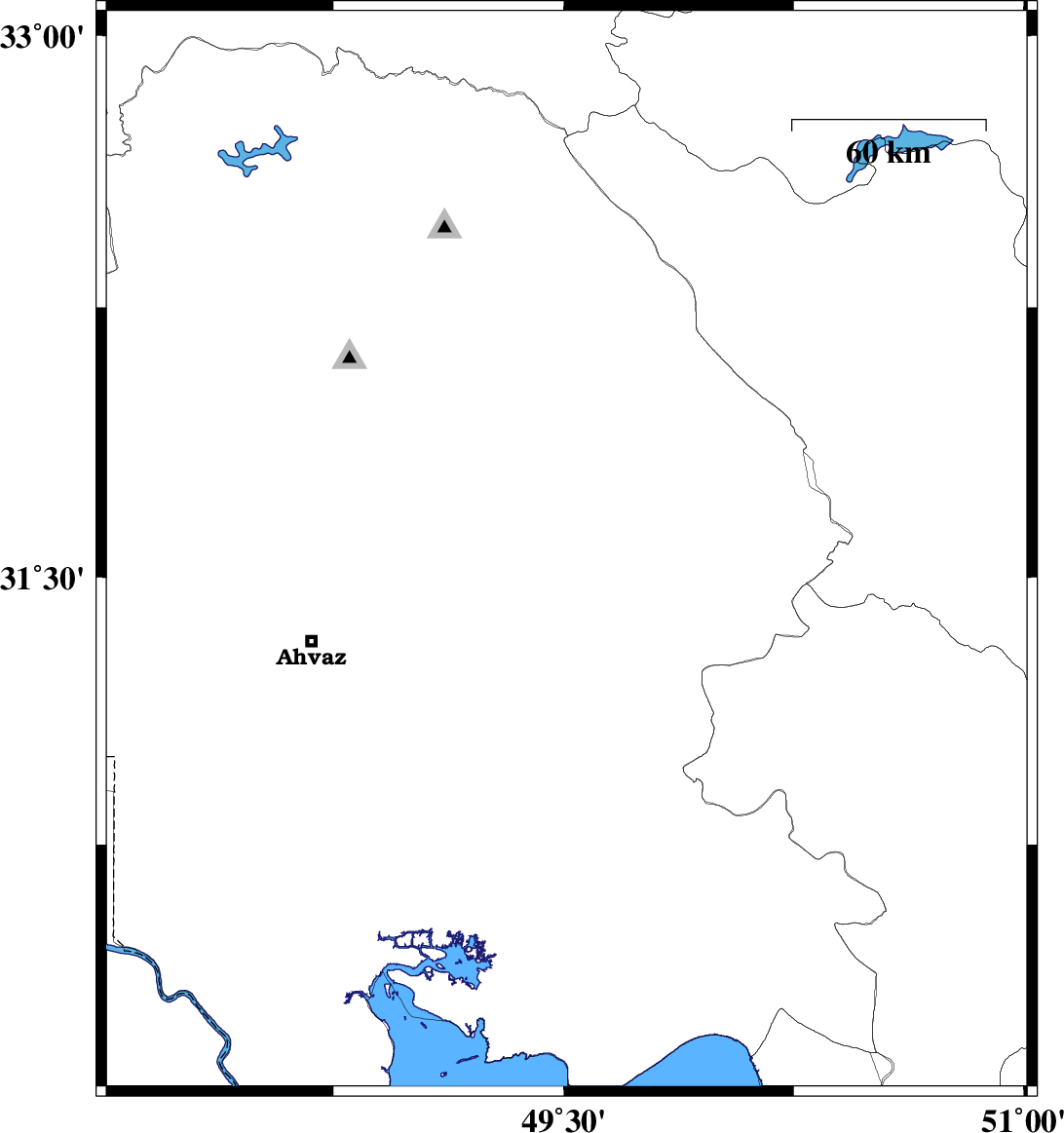 | 2017/10/25 | 09:06:05.9 | 12:36:05.9 | 32.385 | 49.398 | 14 | ML2.6 | Khoozestan Province, 27 km -East of Lali | ||