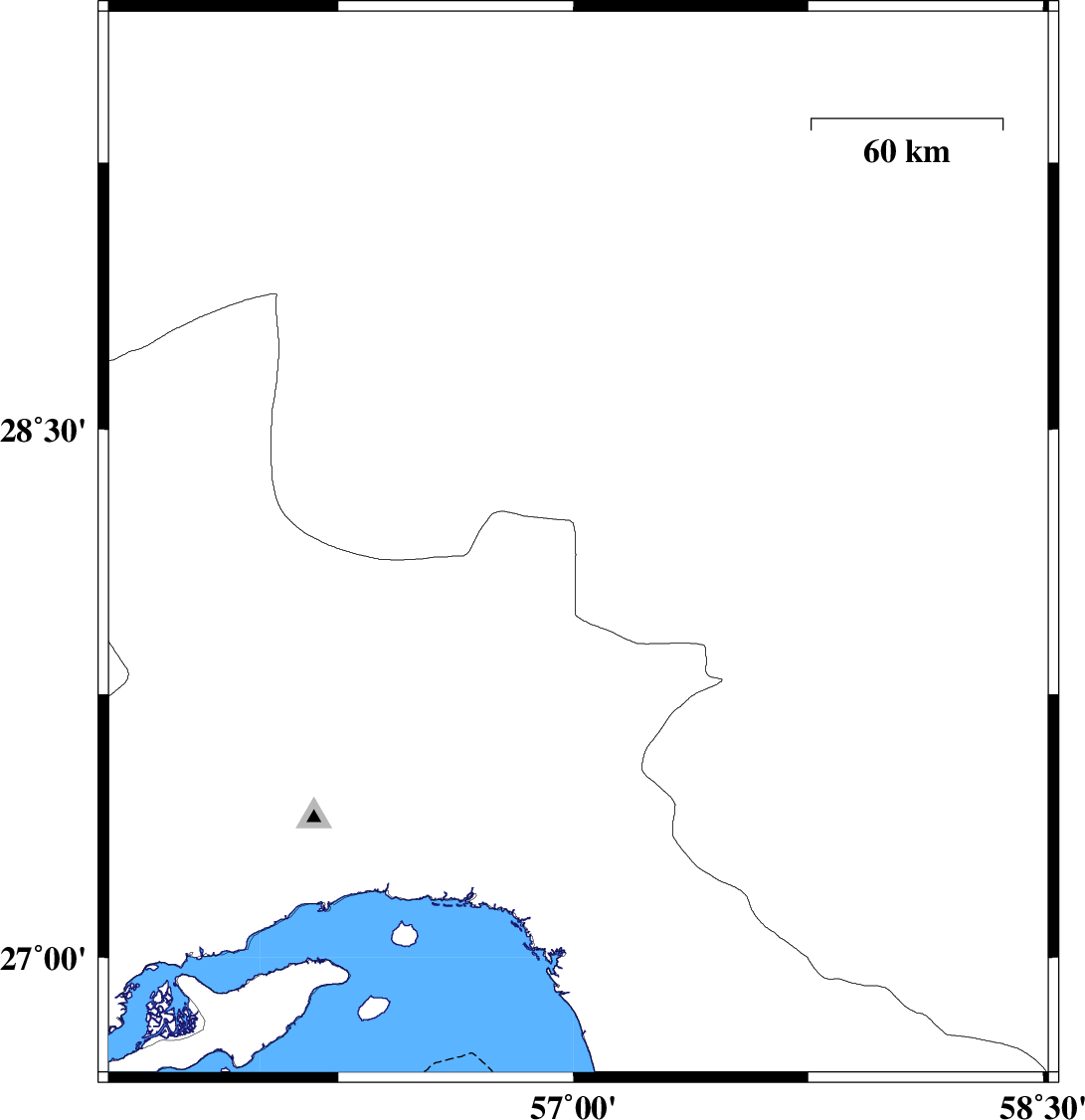 2017/10/27 | 21:56:02.4 | 01:26:02.4 | 27.931 | 57.152 | 14 | ML:2.5 | Kerman Province, 53 km -West of Kahnuj | ||