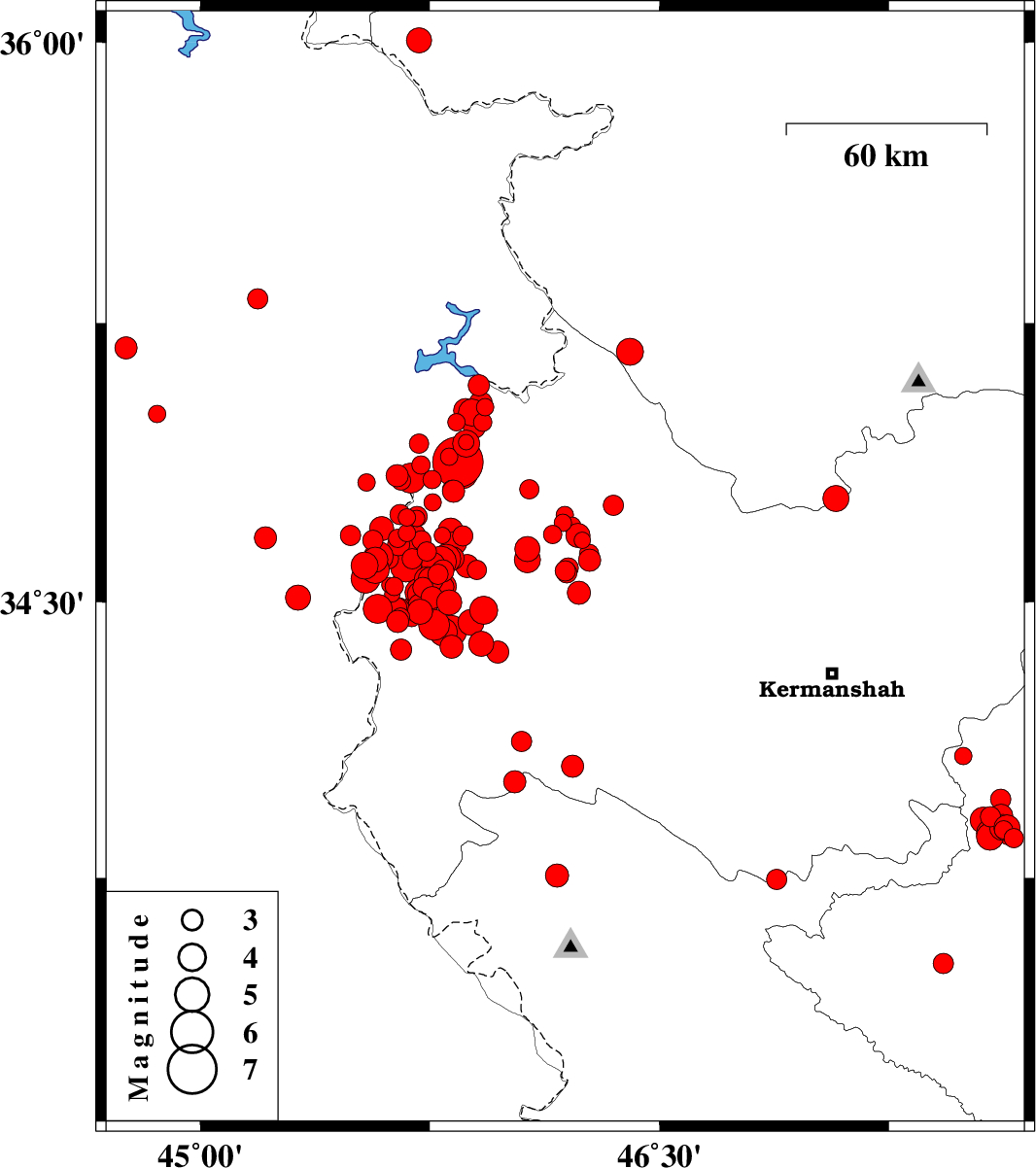 | 2017/11/18 | 02:52:54.1 | 06:22:54.1 | 34.592 | 46.202 | 15 | ML3 | Kermanshah Province, 32 km North-East of Sar-e pol-e zahab | ||