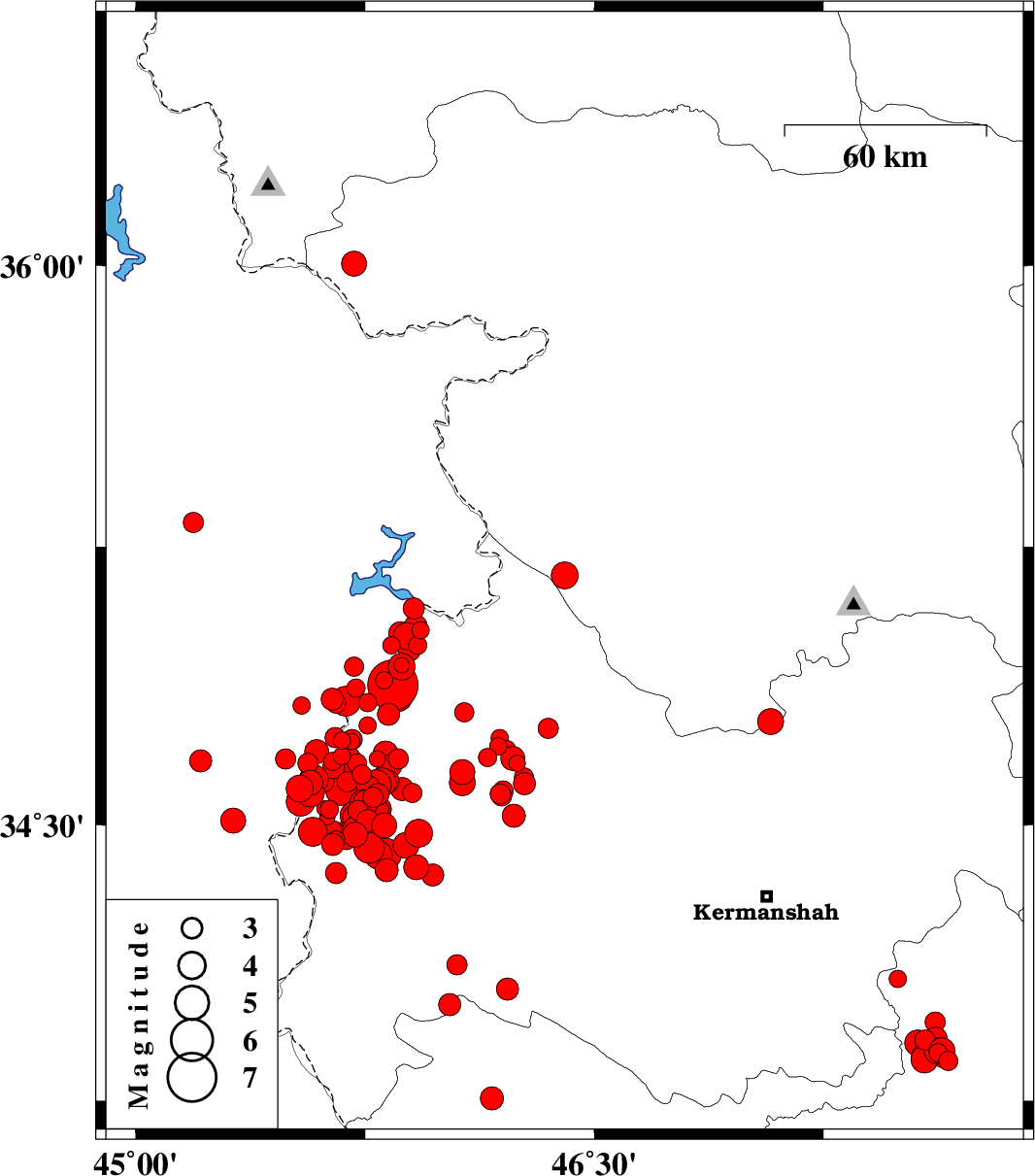 | 2017/11/19 | 06:19:50.0 | 09:49:50.0 | 35.173 | 46.403 | 6 | ML4 | Kurdistan Province, 14 km North of Paveh | ||