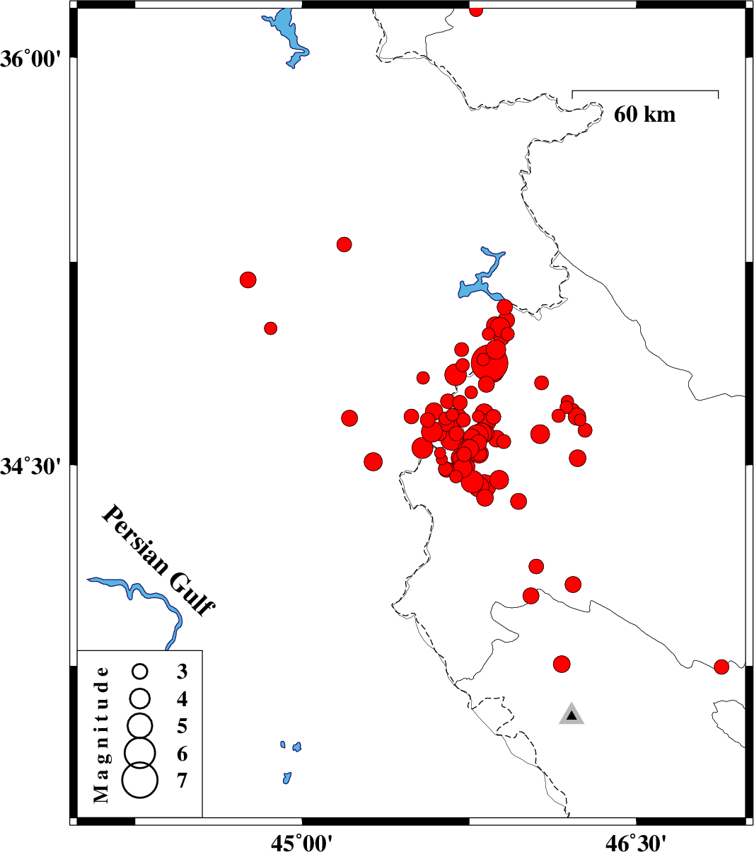 | 2017/11/13 | 04:36:13.4 | 08:06:13.4 | 34.418 | 45.793 | 15 | ML4.1 | Kermanshah Province, 10 km of Sar-e pol-e zahab | ||