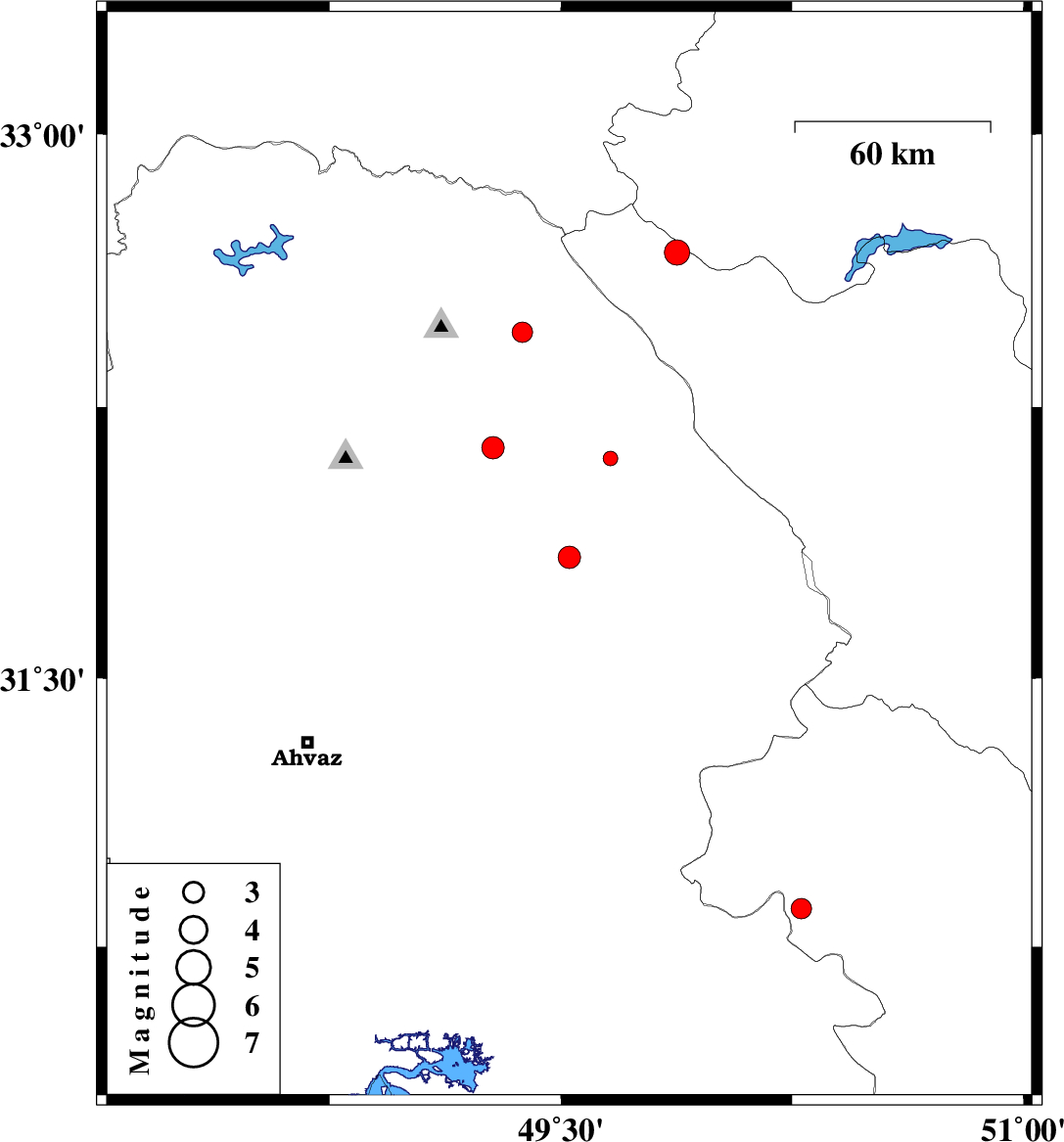 | 2017/11/07 | 12:14:35.3 | 15:44:35.3 | 32.109 | 49.66 | 14 | ML2.1 | Khoozestan Province, 36 km North-West of Izeh |