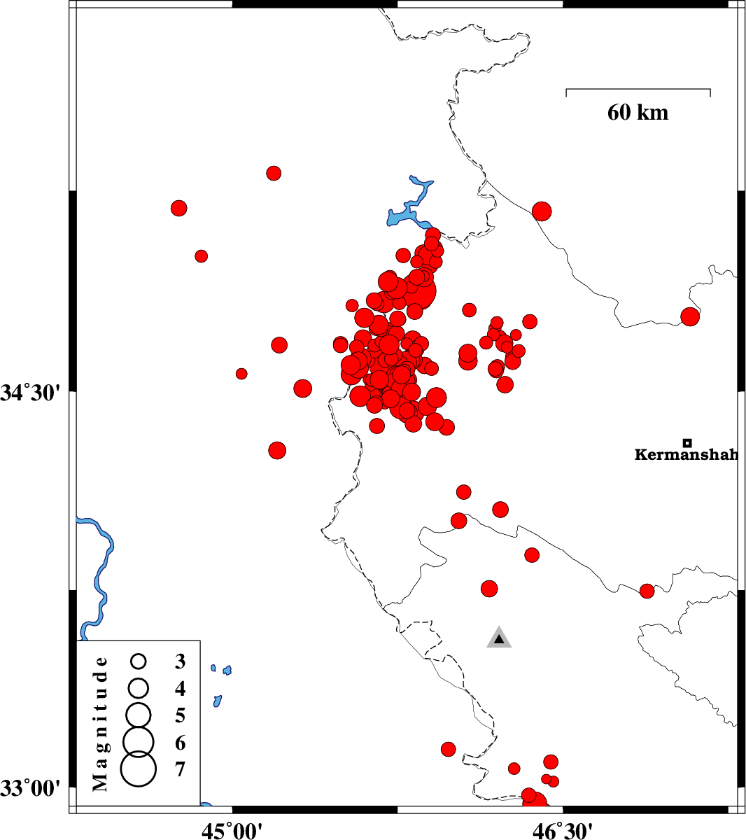 | 2017/11/18 | 02:52:54.1 | 06:22:54.1 | 34.592 | 46.202 | 15 | ML3 | Kermanshah Province, 32 km North-East of Sar-e pol-e zahab | ||