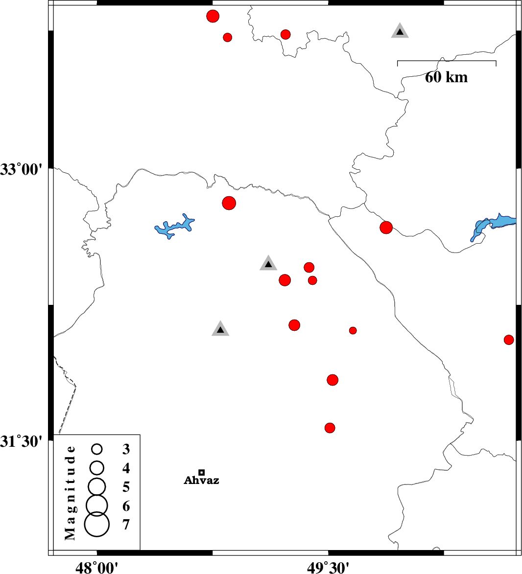 | 2017/10/25 | 09:06:05.9 | 12:36:05.9 | 32.385 | 49.398 | 14 | ML2.6 | Khoozestan Province, 27 km -East of Lali | ||