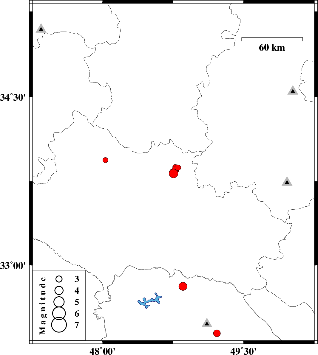 | 2017/11/21 | 05:52:32.8 | 09:22:32.8 | 33.94 | 48.031 | 16 | ML2.6 | Lorestan Province, 16 km South of Nurabad | ||