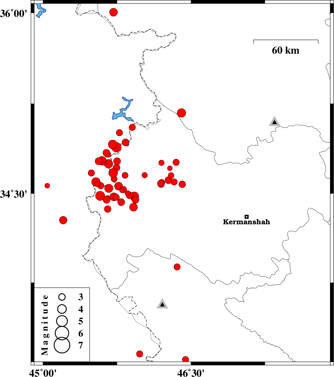 | 2017/11/18 | 02:52:54.1 | 06:22:54.1 | 34.592 | 46.202 | 15 | ML3 | Kermanshah Province, 32 km North-East of Sar-e pol-e zahab | ||