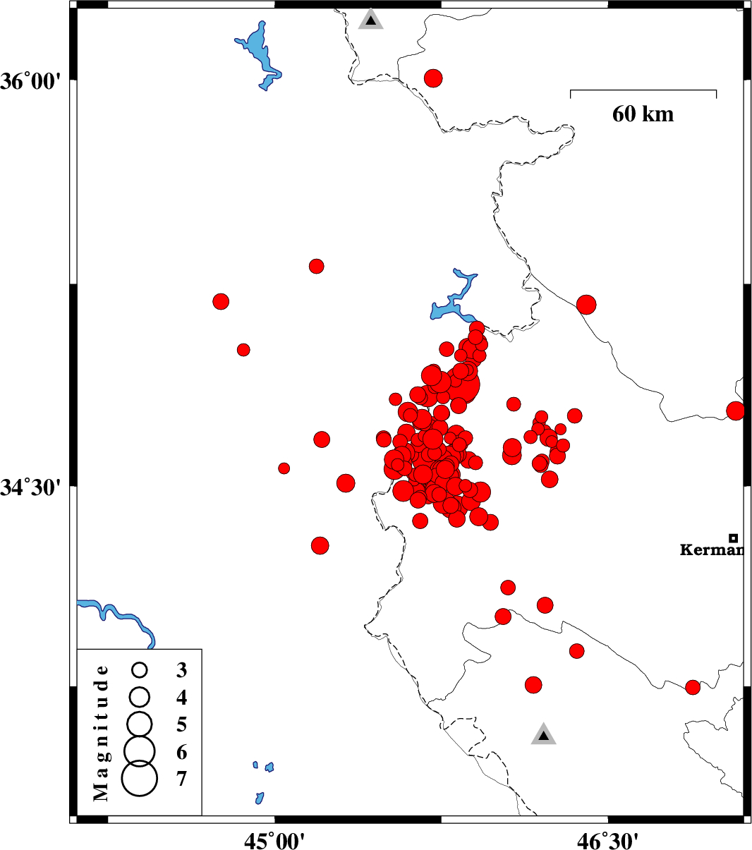 | 2017/11/15 | 01:23:46.9 | 04:53:46.9 | 34.931 | 45.869 | 6 | ML2.2 | Kermanshah Province, 19 km North of Tazehabad | ||