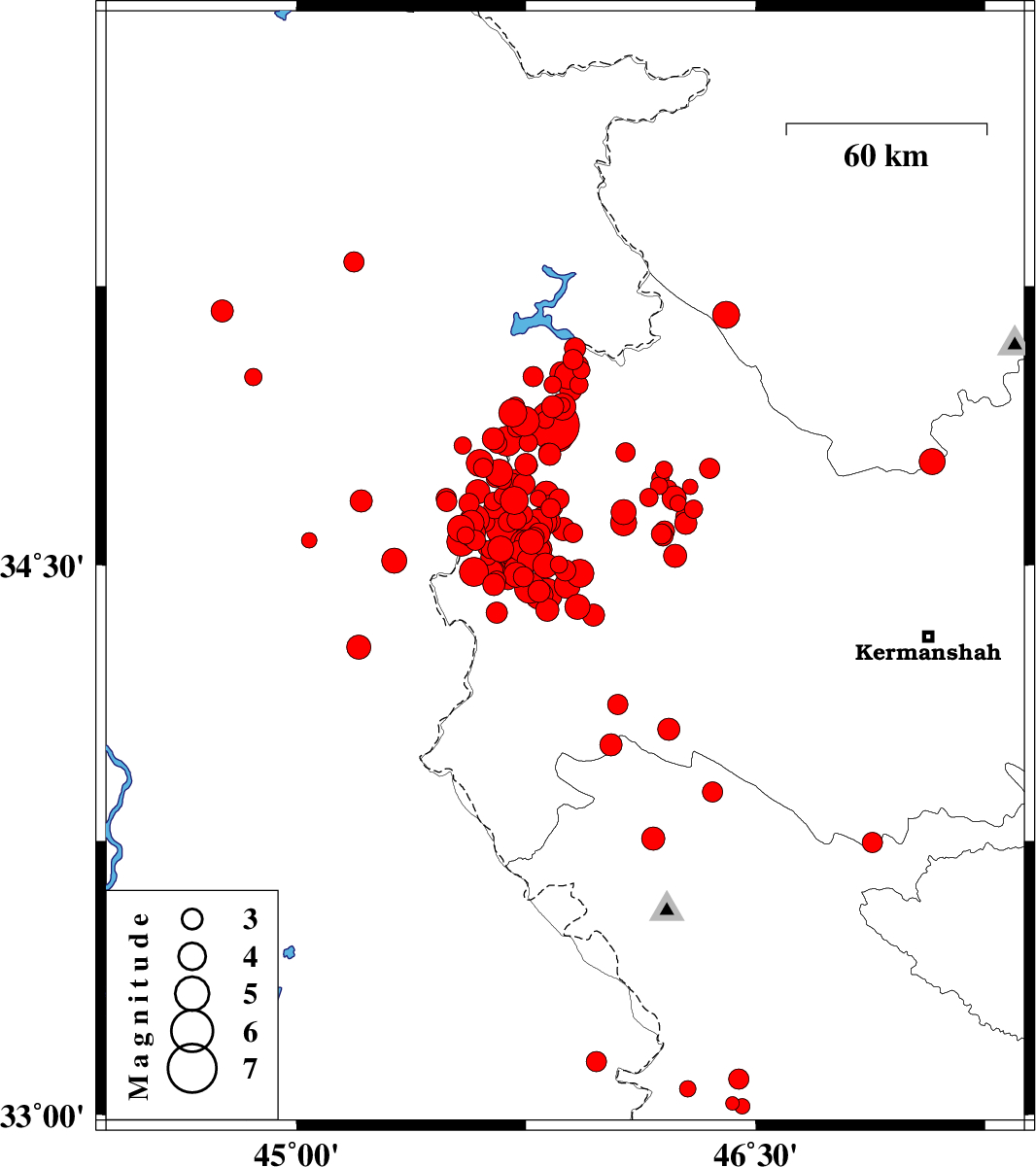 | 2017/11/23 | 14:00:14.8 | 17:30:14.8 | 34.468 | 45.741 | 14 | ML3 | Kermanshah Province, 14 km -West of Sar-e pol-e zahab | ||