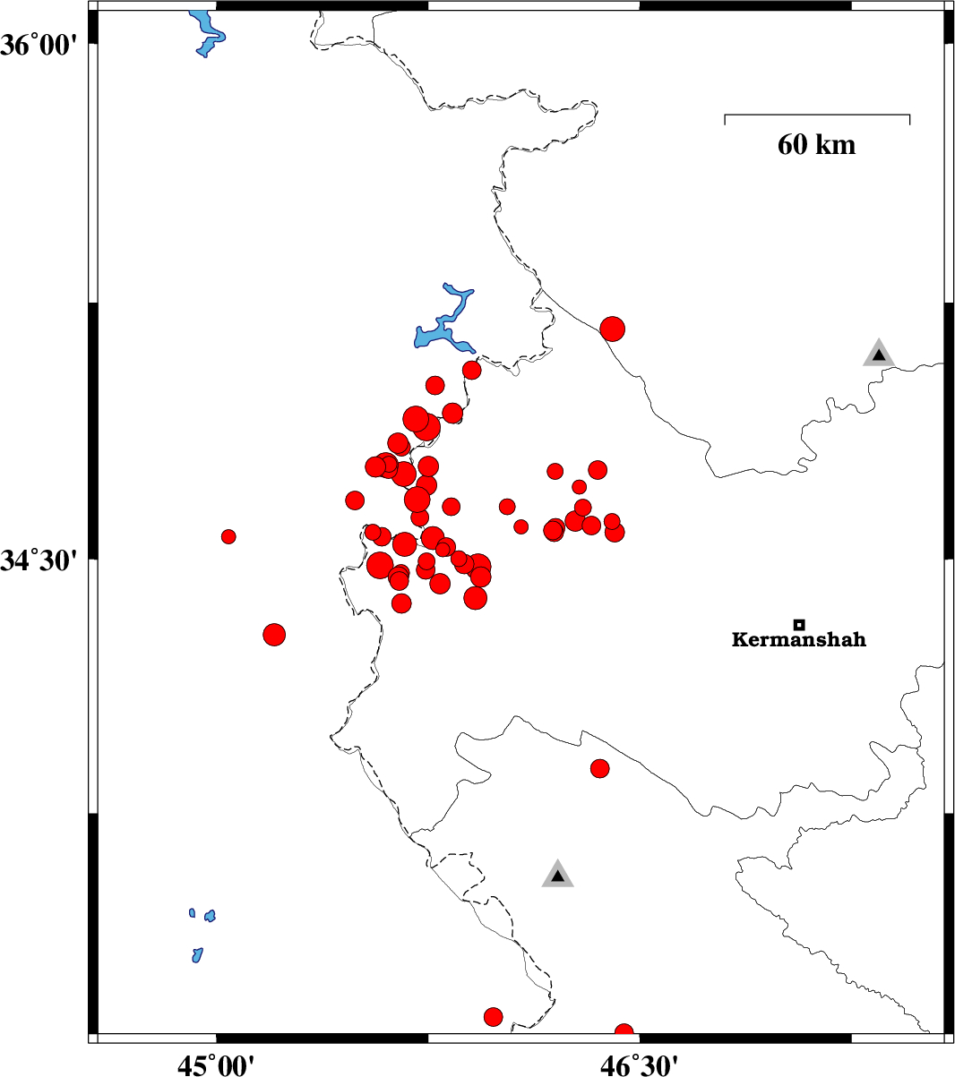 | 2017/11/19 | 06:19:50.0 | 09:49:50.0 | 35.173 | 46.403 | 6 | ML4 | Kurdistan Province, 14 km North of Paveh | ||
