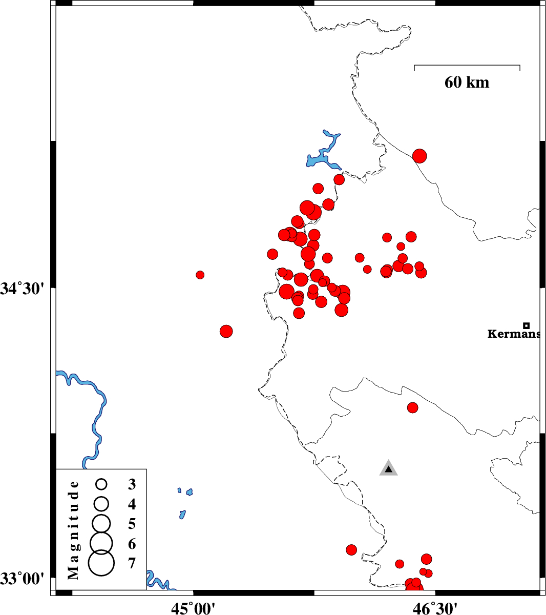 | 2017/11/23 | 14:00:14.8 | 17:30:14.8 | 34.468 | 45.741 | 14 | ML3 | Kermanshah Province, 14 km -West of Sar-e pol-e zahab | ||