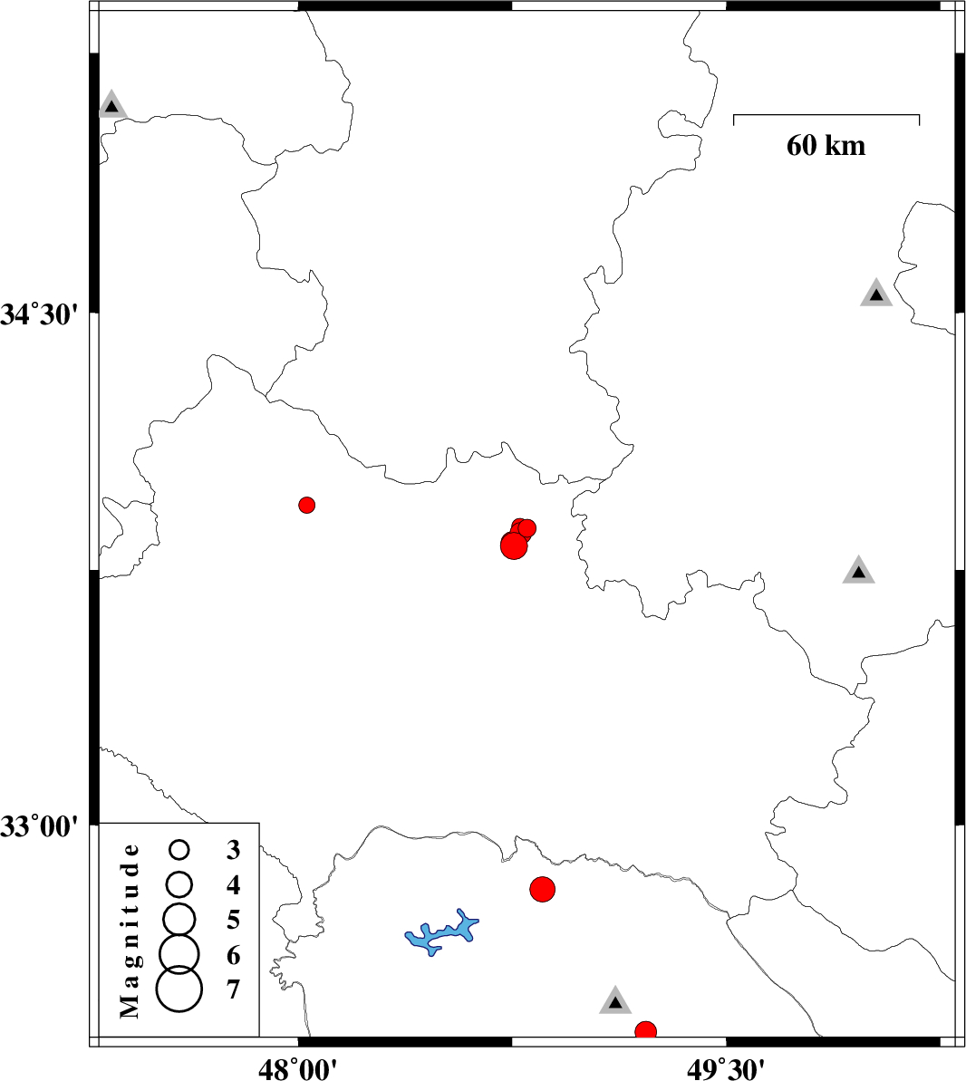 2017/11/21 | 05:52:32.8 | 09:22:32.8 | 33.94 | 48.031 | 16 | ML2.6 | Lorestan Province, 16 km South of Nurabad | ||