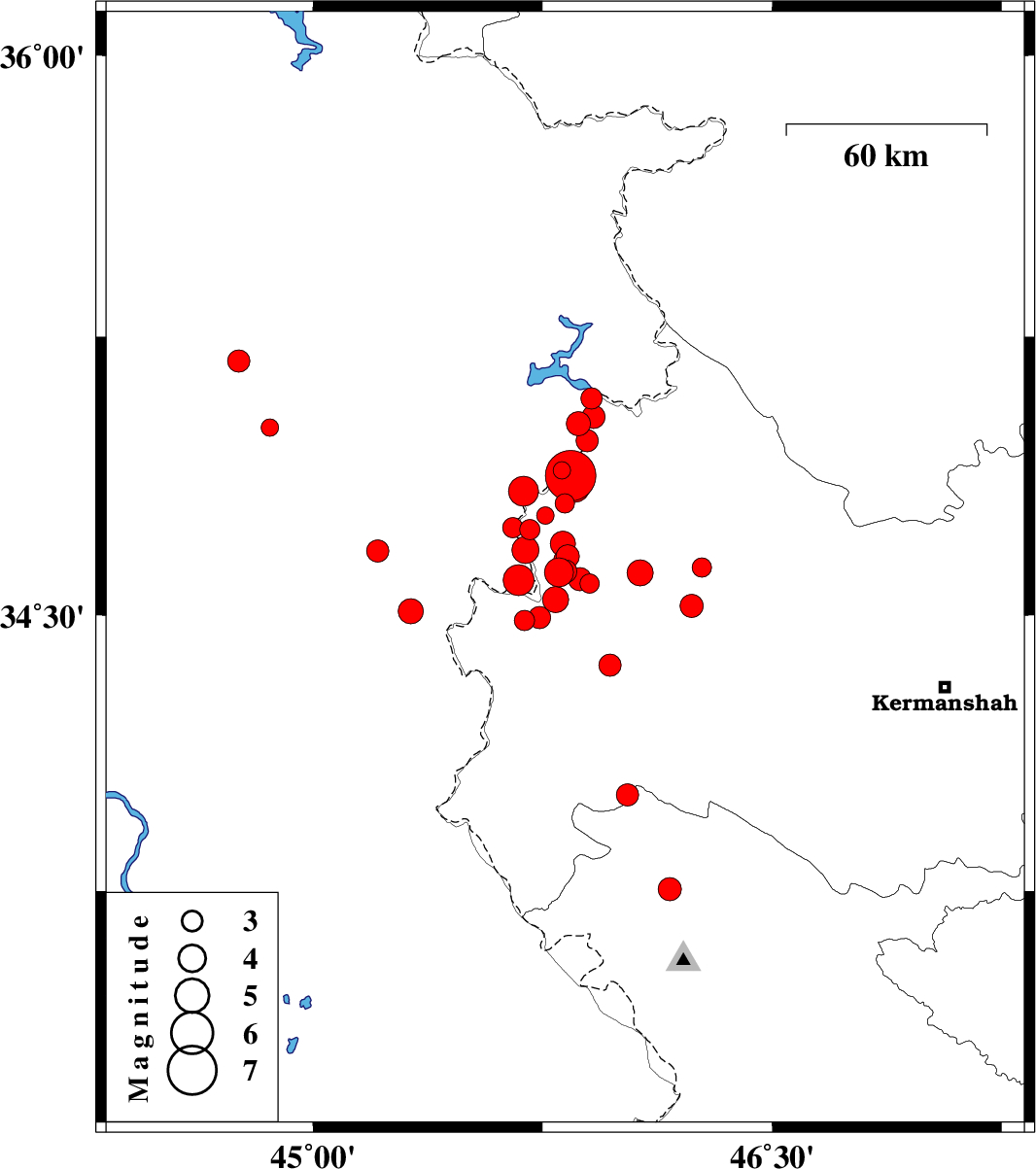 | 2017/11/12 | 22:38:36.3 | 02:08:36.3 | 34.485 | 45.691 | 14 | ML3 | Kermanshah Province, 10 km -East of Qasr-E-Shirin | ||