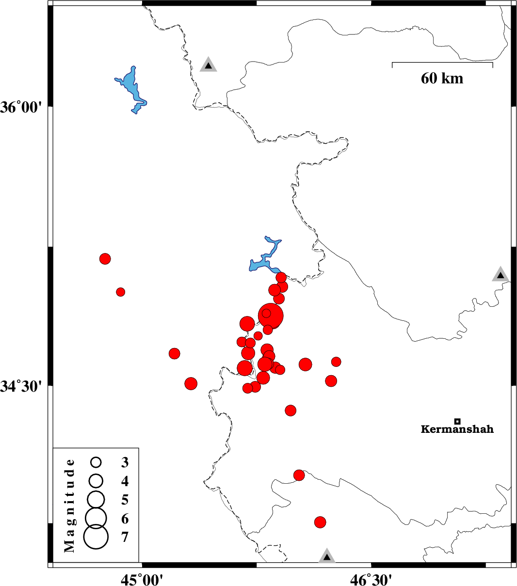 | 2017/11/12 | 18:18:17.8 | 21:48:17.8 | 34.877 | 45.841 | 18 | Mb7.3 | Kermanshah Province, 13 km North of Tazehabad | ||