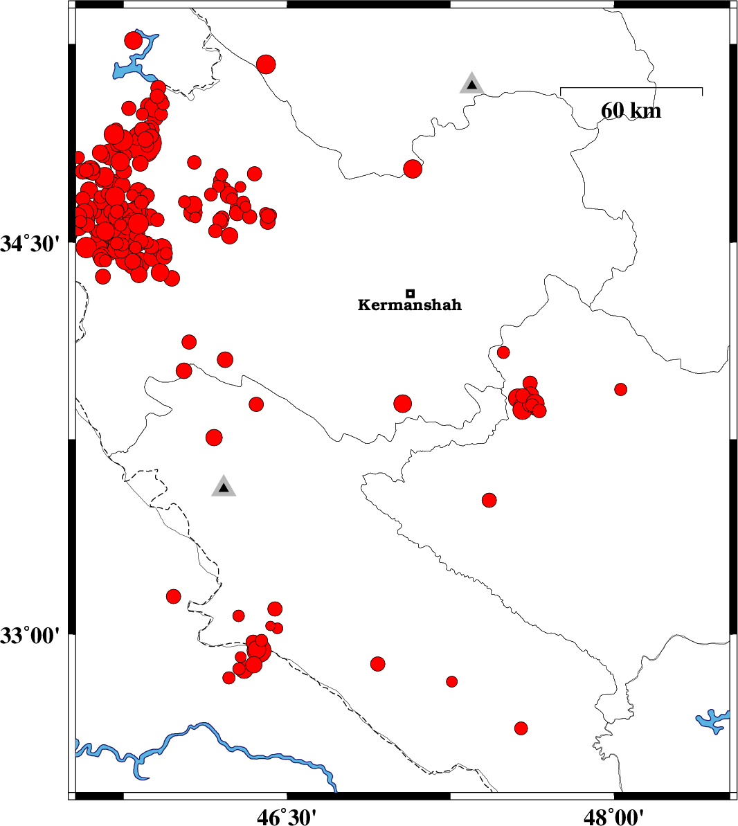 | 2017/11/18 | 02:52:54.1 | 06:22:54.1 | 34.592 | 46.202 | 15 | ML3 | Kermanshah Province, 32 km North-East of Sar-e pol-e zahab | ||
