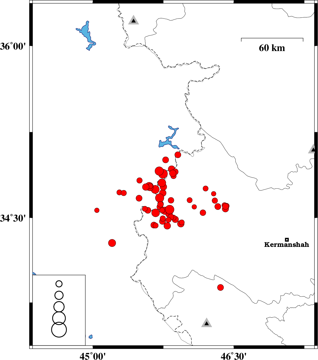 | 2017/11/23 | 14:00:14.8 | 17:30:14.8 | 34.468 | 45.741 | 14 | ML3 | Kermanshah Province, 14 km -West of Sar-e pol-e zahab | ||