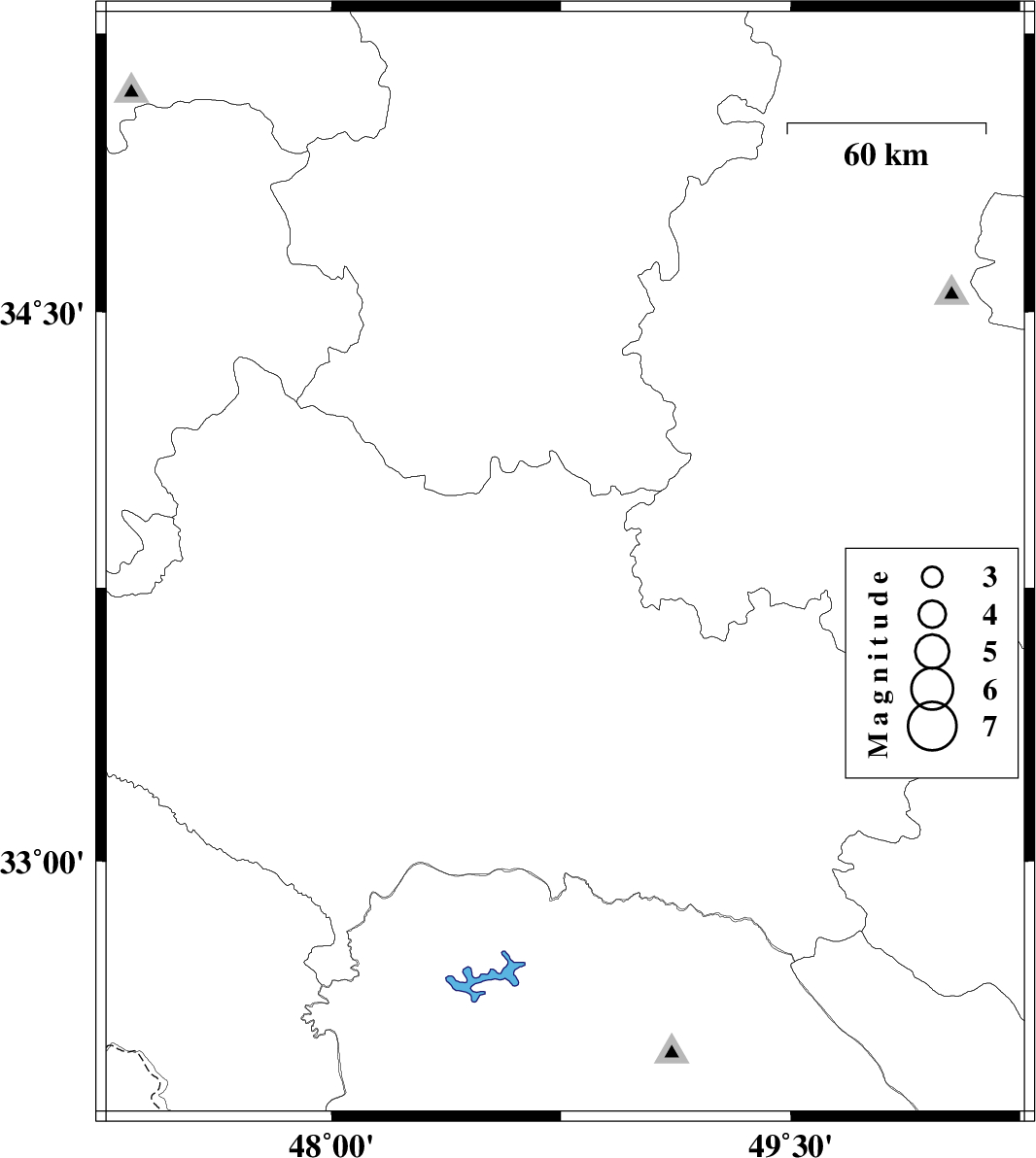 2017/11/27 | 05:20:56.5 | 08:50:56.5 | 33.81 | 48.764 | 14 | ML:3.4 | Lorestan Province, 10 km of Borujerd | ||
