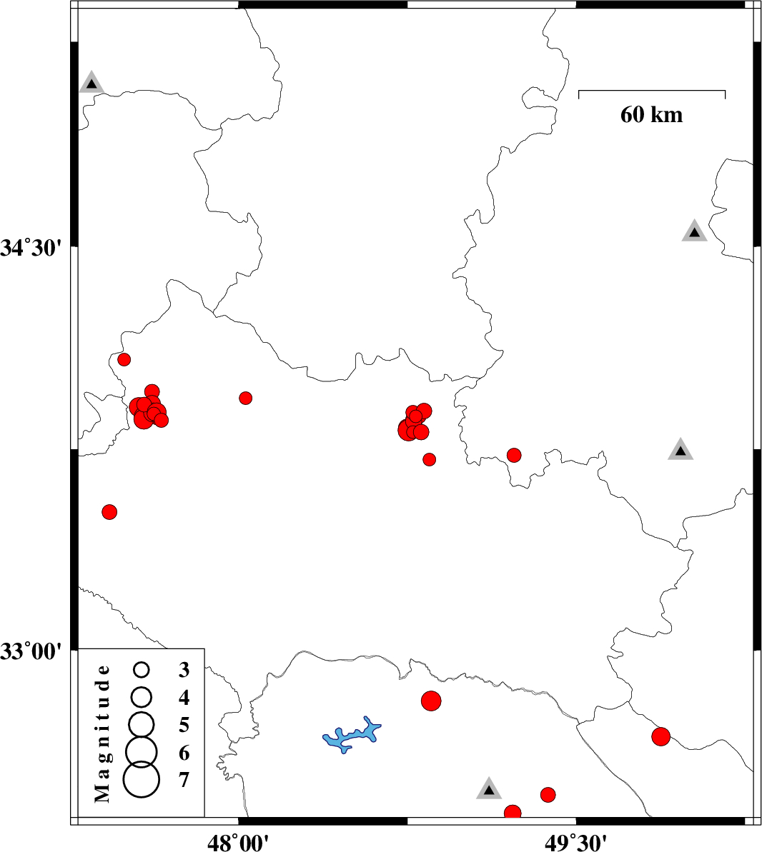 | 2017/11/14 | 04:48:54.8 | 08:18:54.8 | 33.862 | 47.579 | 15 | ML4 | Lorestan Province, 37 km North of Kuhdasht | ||