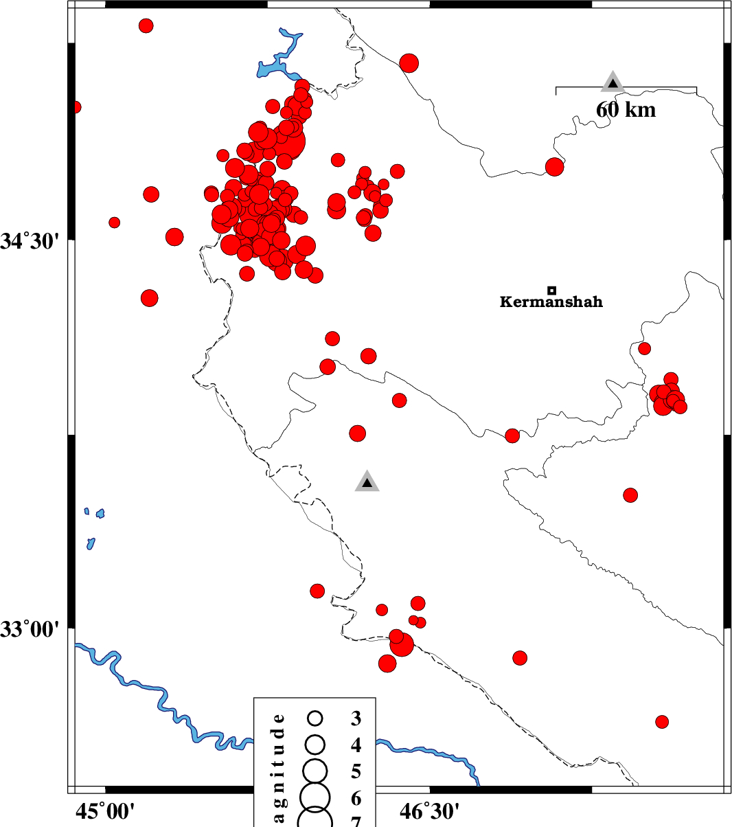 | 2017/11/19 | 23:08:00.7 | 02:38:00.7 | 34.584 | 46.192 | 15 | ML3 | Kermanshah Province, 31 km North-East of Sar-e pol-e zahab | ||