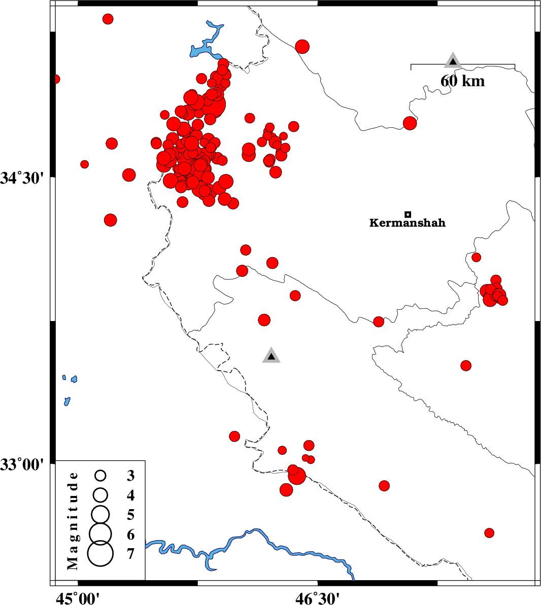 | 2017/11/18 | 02:52:54.1 | 06:22:54.1 | 34.592 | 46.202 | 15 | ML3 | Kermanshah Province, 32 km North-East of Sar-e pol-e zahab | ||