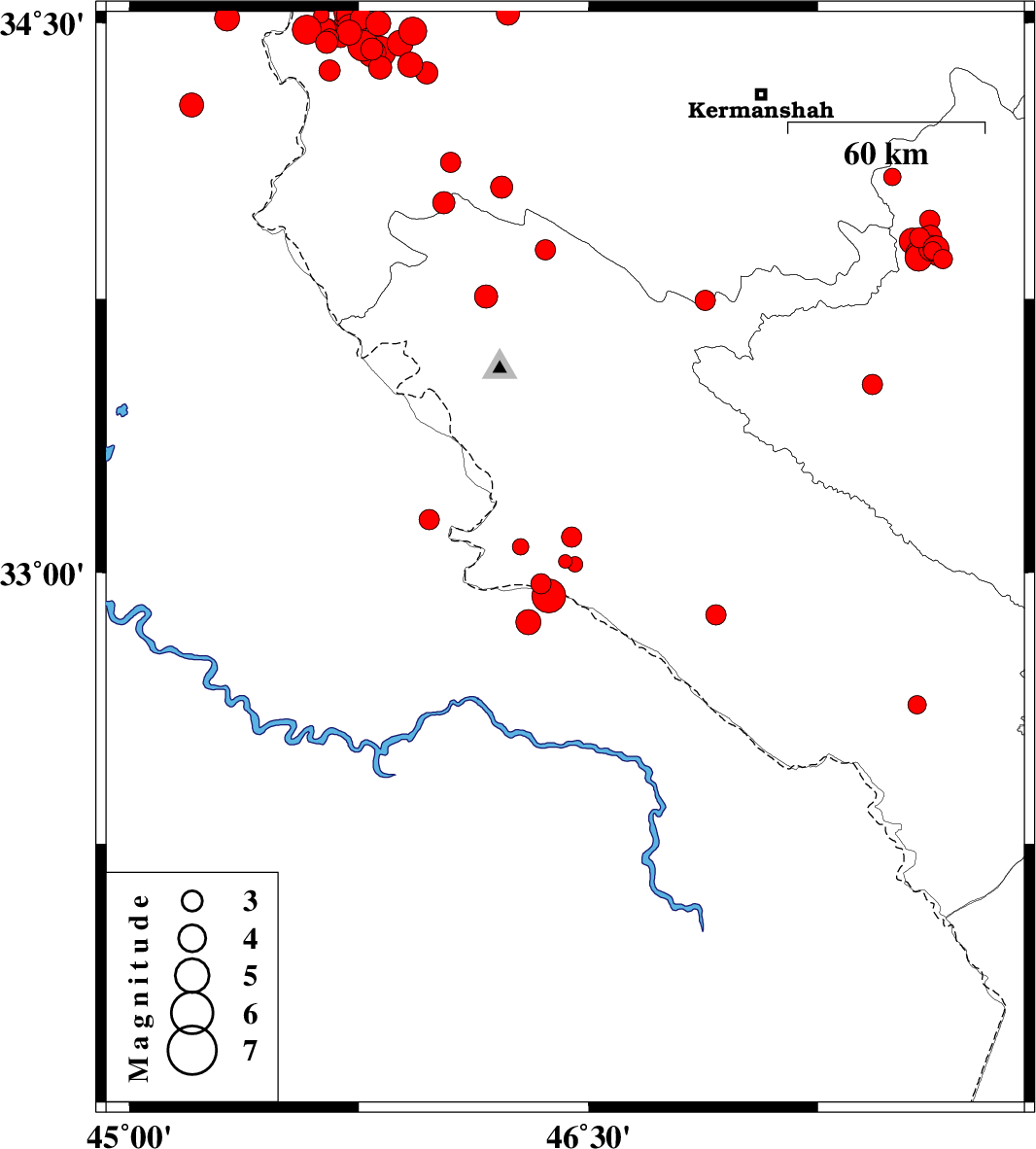 | 2017/11/12 | 22:38:36.3 | 02:08:36.3 | 34.485 | 45.691 | 14 | ML3 | Kermanshah Province, 10 km -East of Qasr-E-Shirin | ||