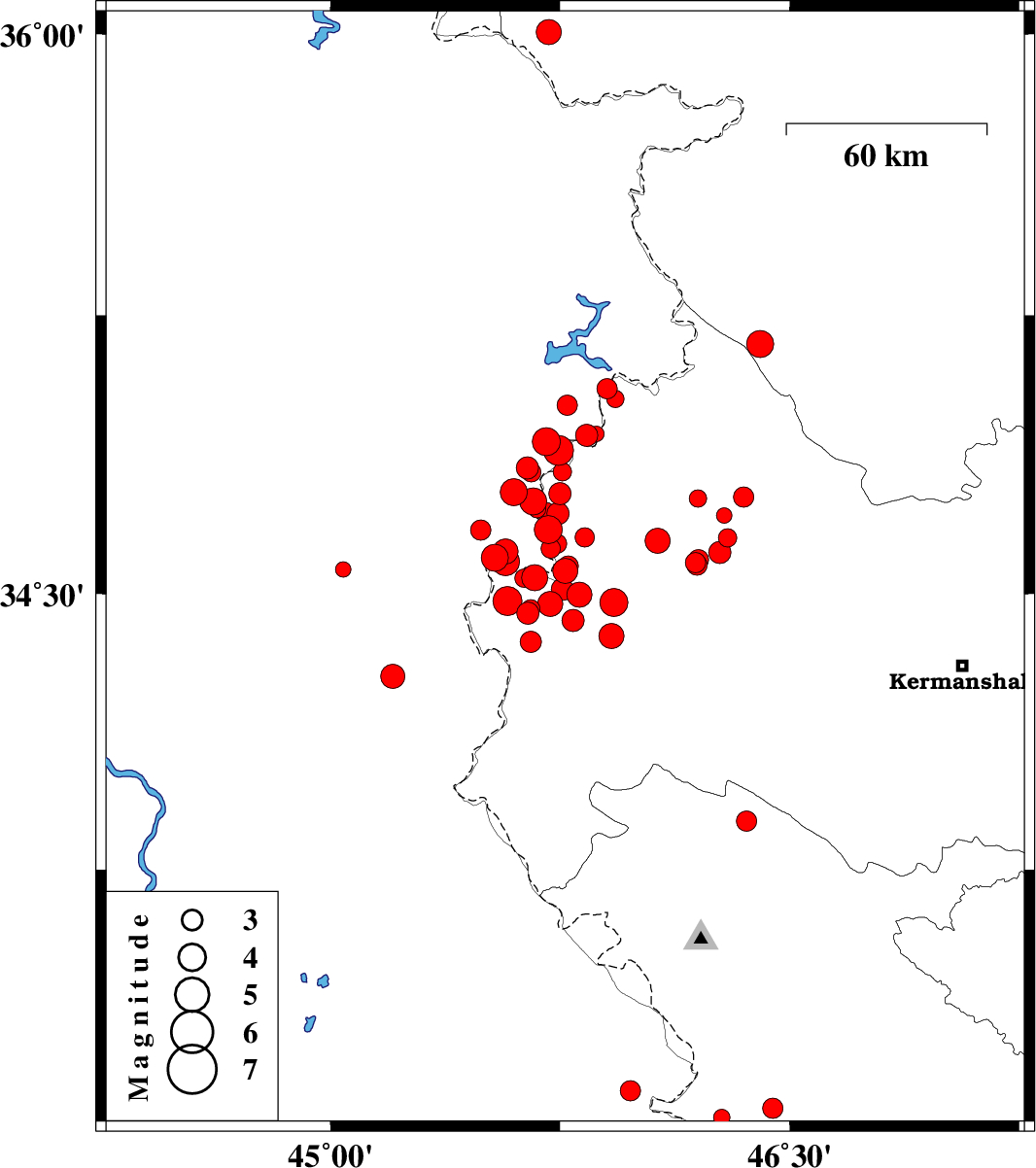 | 2017/11/19 | 14:04:58.6 | 17:34:58.6 | 34.447 | 45.645 | 15 | ML3.2 | Kermanshah Province, 10 km of Qasr-E-Shirin | ||