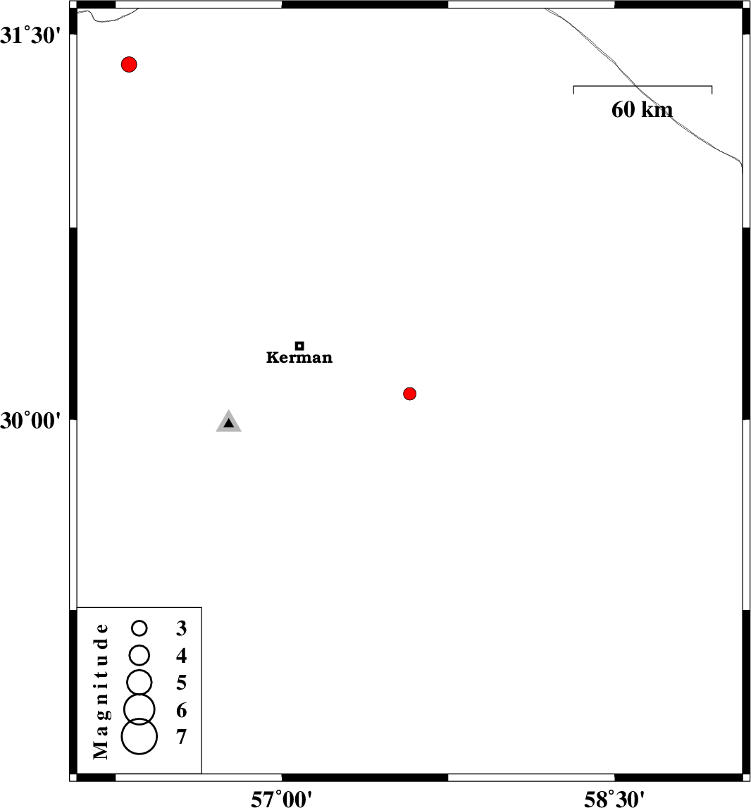 | 2017/11/27 | 01:56:22.0 | 05:26:22.0 | 30.1 | 57.576 | 14 | ML2.6 | Kerman Province, 52 km South-East of Kerman | ||