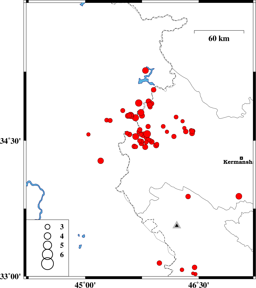 | 2017/11/23 | 14:00:14.8 | 17:30:14.8 | 34.468 | 45.741 | 14 | ML3 | Kermanshah Province, 14 km -West of Sar-e pol-e zahab | ||