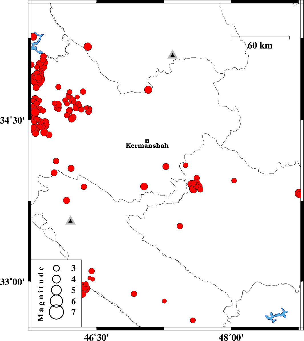 2017/11/29 | 01:46:12.7 | 05:16:12.7 | 34.07 | 47.272 | 16 | ML:3.3 | Kermanshah Province, 32 km South-East of Kermanshah | ||