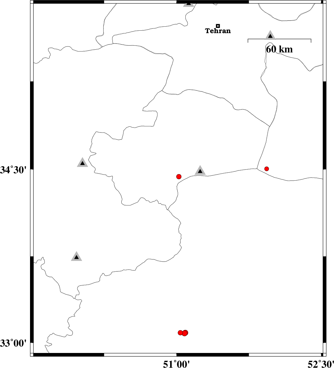 | 2017/11/29 | 01:06:17.1 | 04:36:17.1 | 34.414 | 50.974 | 18 | ML2.3 | Qom Province, 28 km South-East of Qom | ||