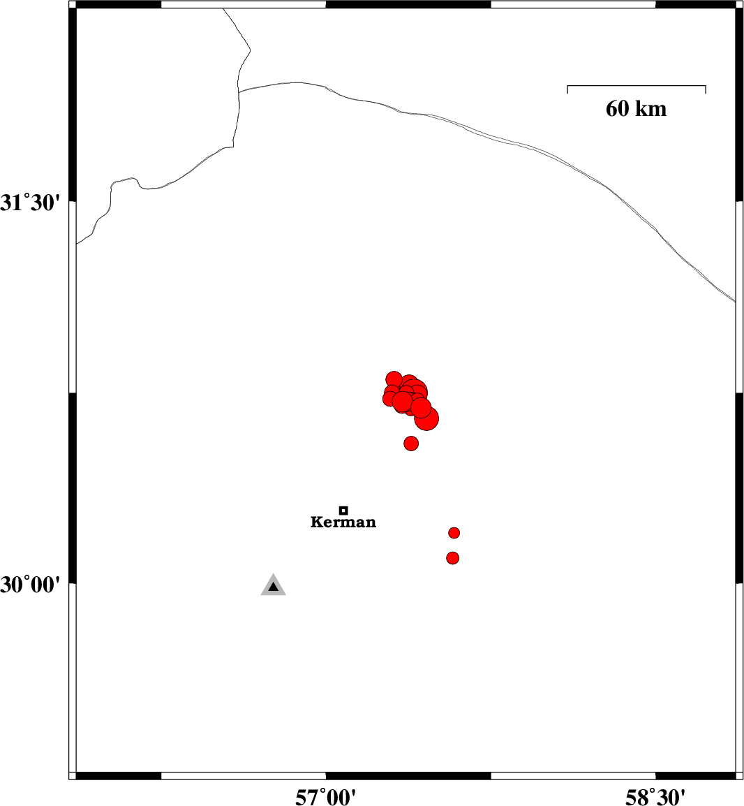 2017/12/01 04:33:27.2 08:03:27.2 30.72757.38814 ML2.7 Kerman Province, 57 km North-East of Kerman