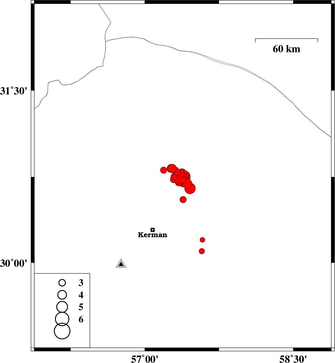 2017/12/02 10:50:40.4 14:20:40.4 30.75157.35615 ML4.1 Kerman Province, 58 km North-East of Kerman