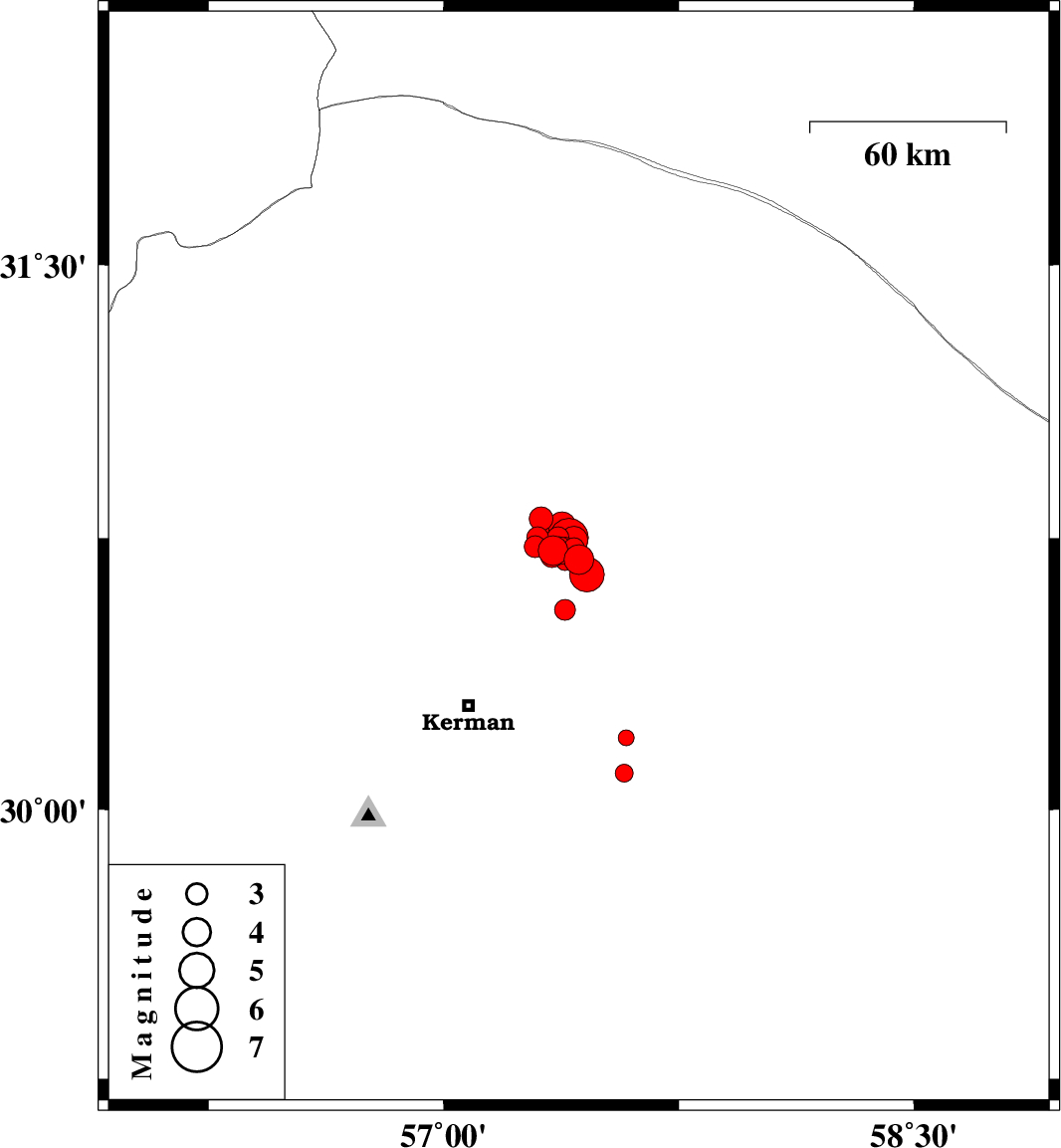 2017/12/01 03:35:00.5 07:05:00.5 30.75257.39916 ML5.5 Kerman Province, 60 km North-East of Kerman