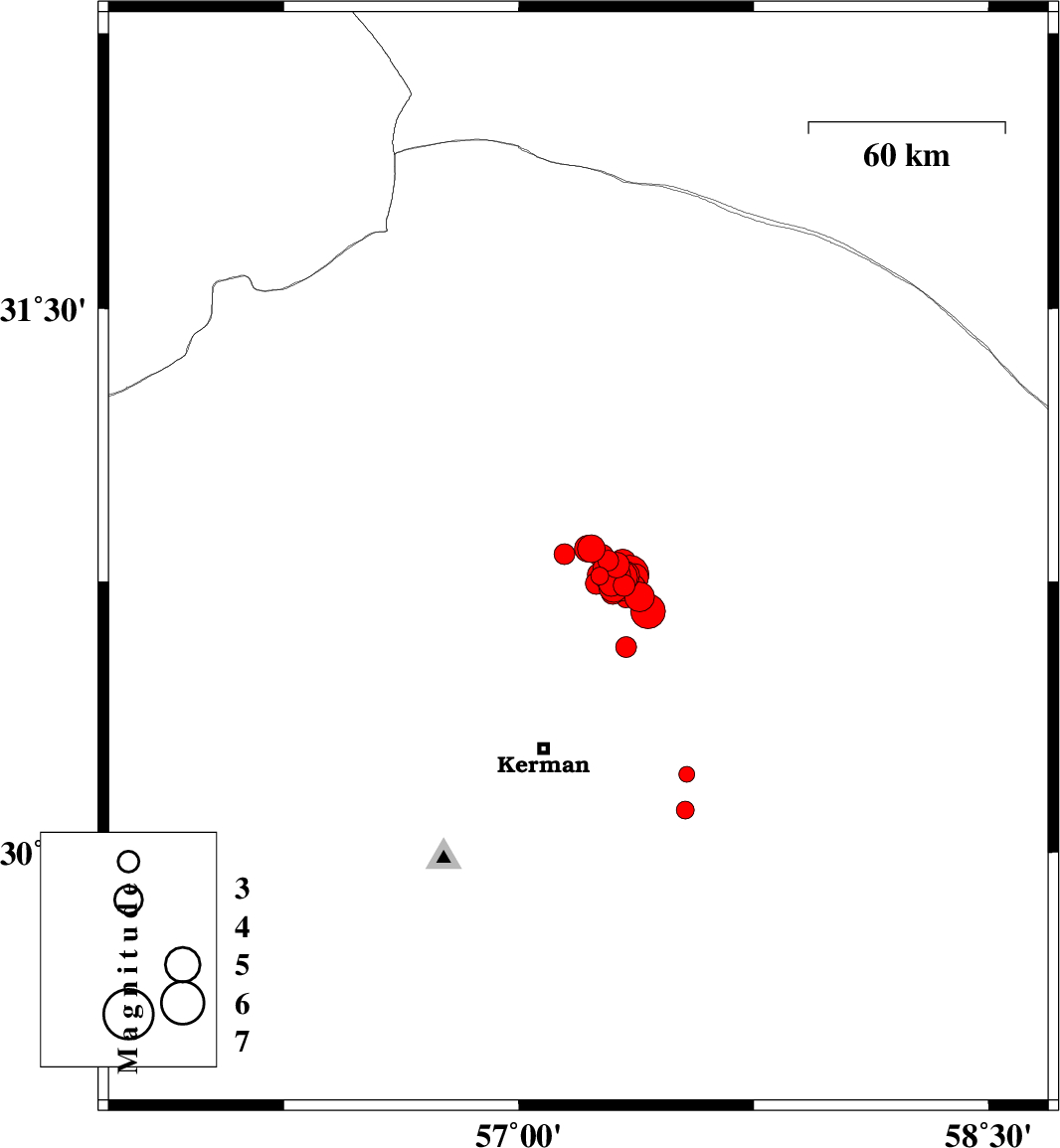 2017/12/02 10:50:40.4 14:20:40.4 30.75157.35615 ML4.1 Kerman Province, 58 km North-East of Kerman