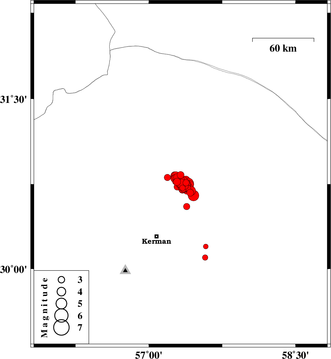 2017/12/02 10:50:40.4 14:20:40.4 30.75157.35615 ML4.1 Kerman Province, 58 km North-East of Kerman