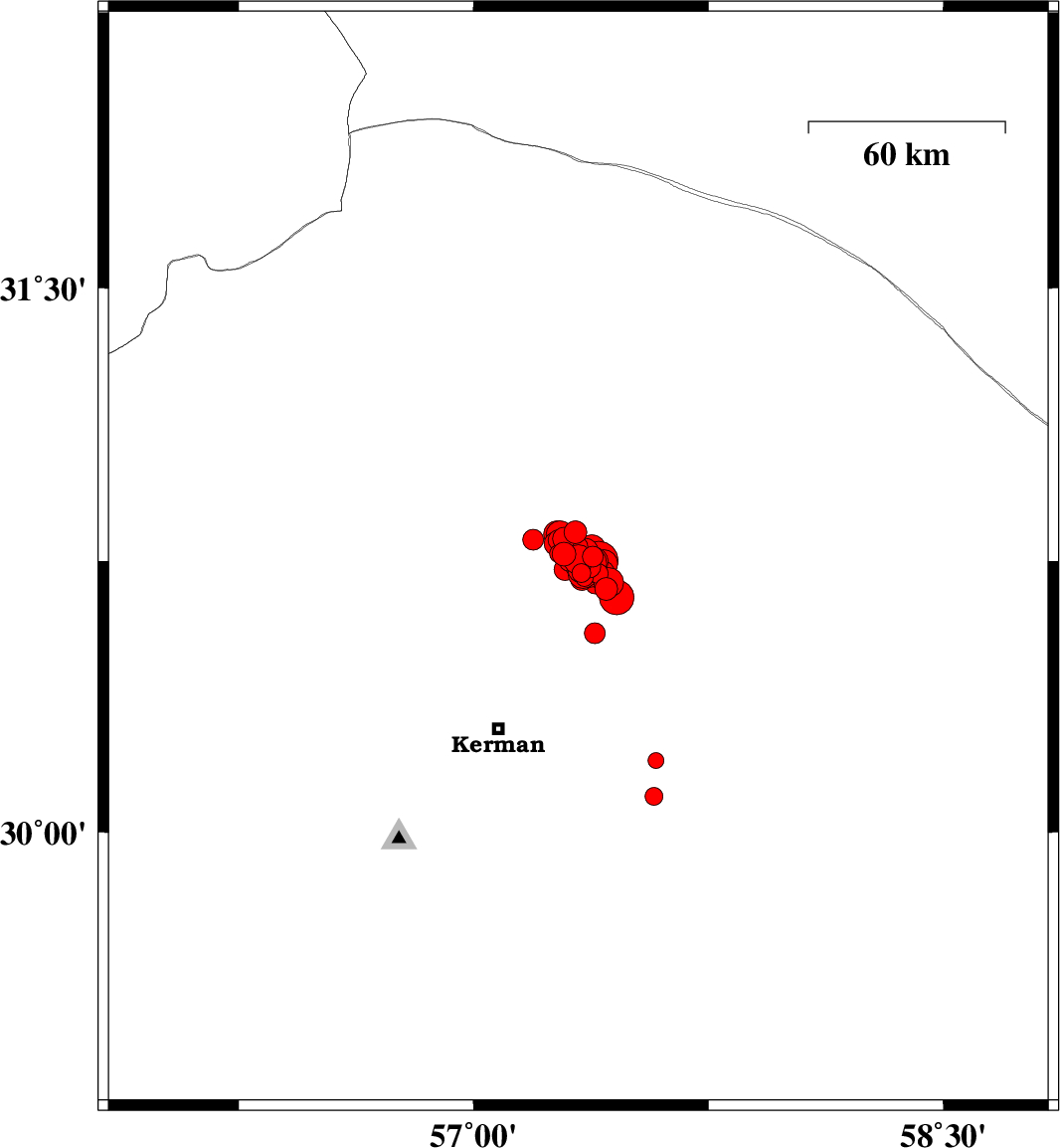 | 2017/11/27 | 01:56:22.0 | 05:26:22.0 | 30.1 | 57.576 | 14 | ML2.6 | Kerman Province, 52 km South-East of Kerman |