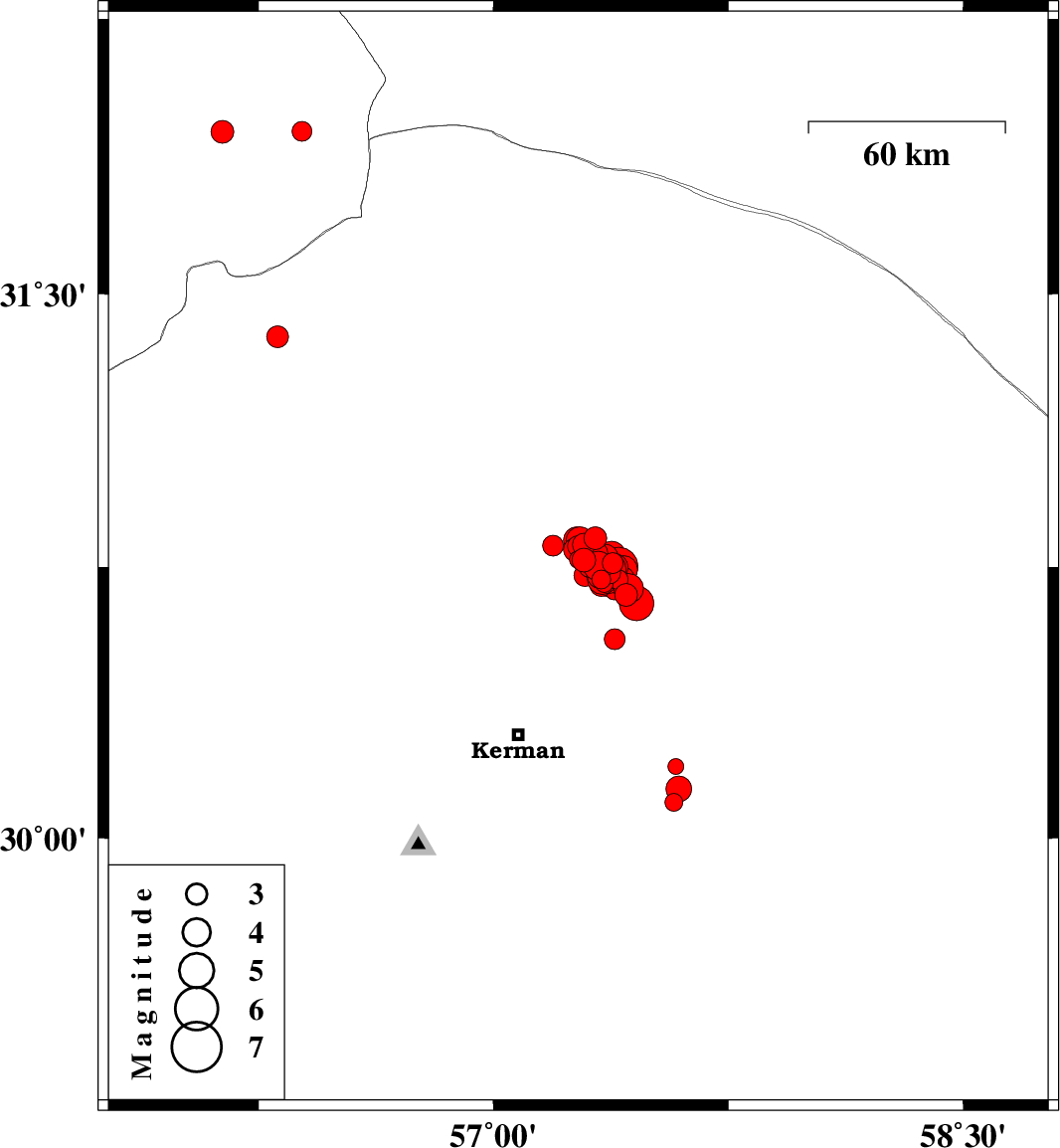 2017/12/02 10:50:40.4 14:20:40.4 30.75157.35615 ML4.1 Kerman Province, 58 km North-East of Kerman