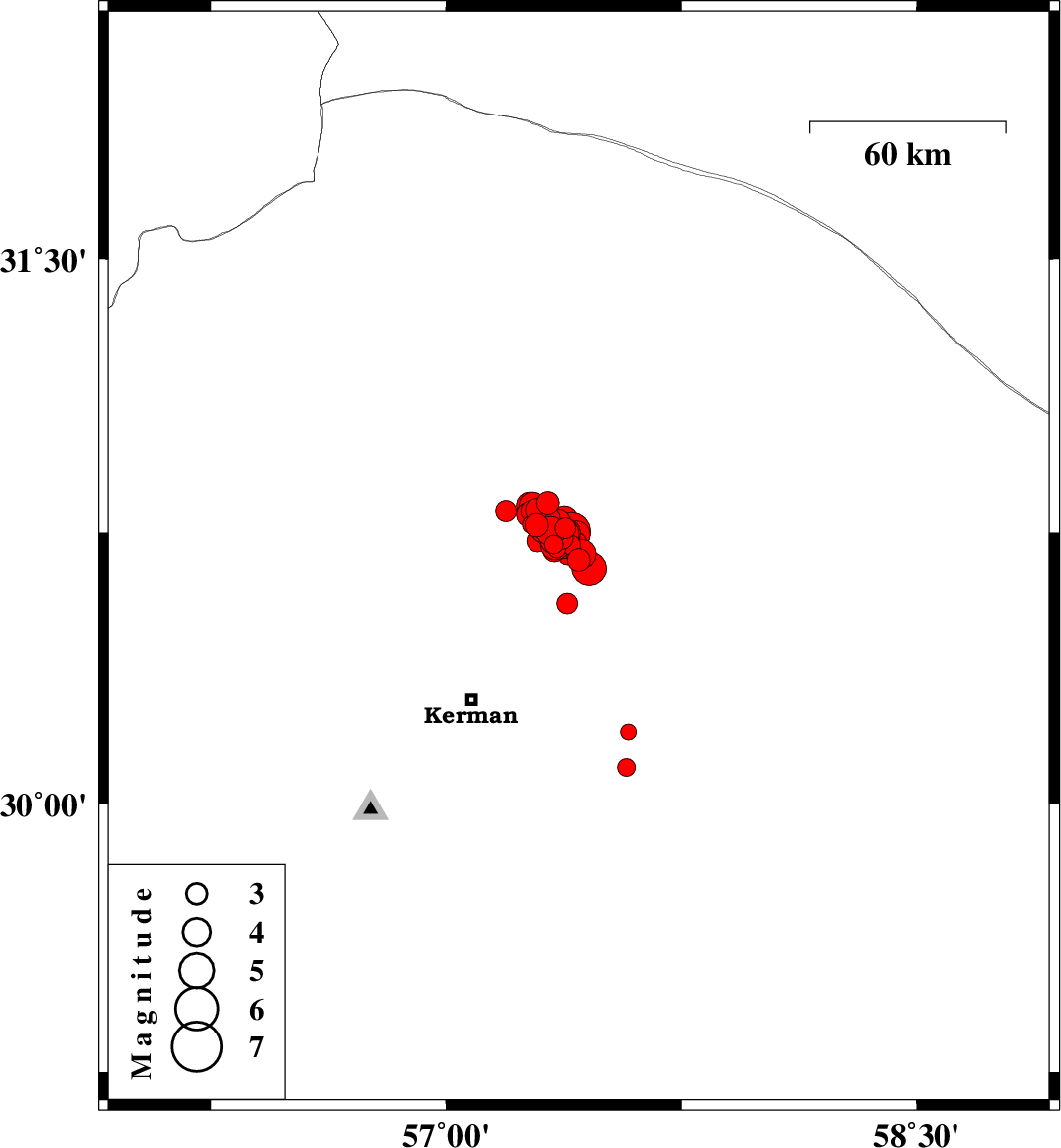 2017/12/02 10:50:40.4 14:20:40.4 30.75157.35615 ML4.1 Kerman Province, 58 km North-East of Kerman