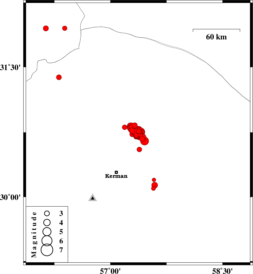 2017/12/02 10:50:40.4 14:20:40.4 30.75157.35615 ML4.1 Kerman Province, 58 km North-East of Kerman