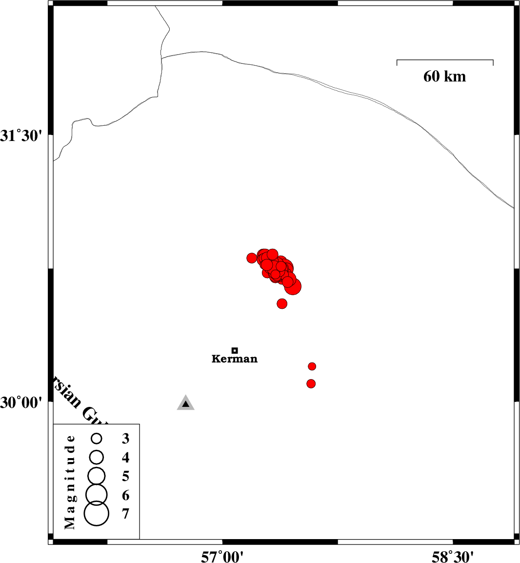 | 2017/12/01 | 02:43:25.4 | 06:13:25.4 | 30.65 | 57.457 | 14 | ML5 | Kerman Province, 54 km North-East of Kerman | ||